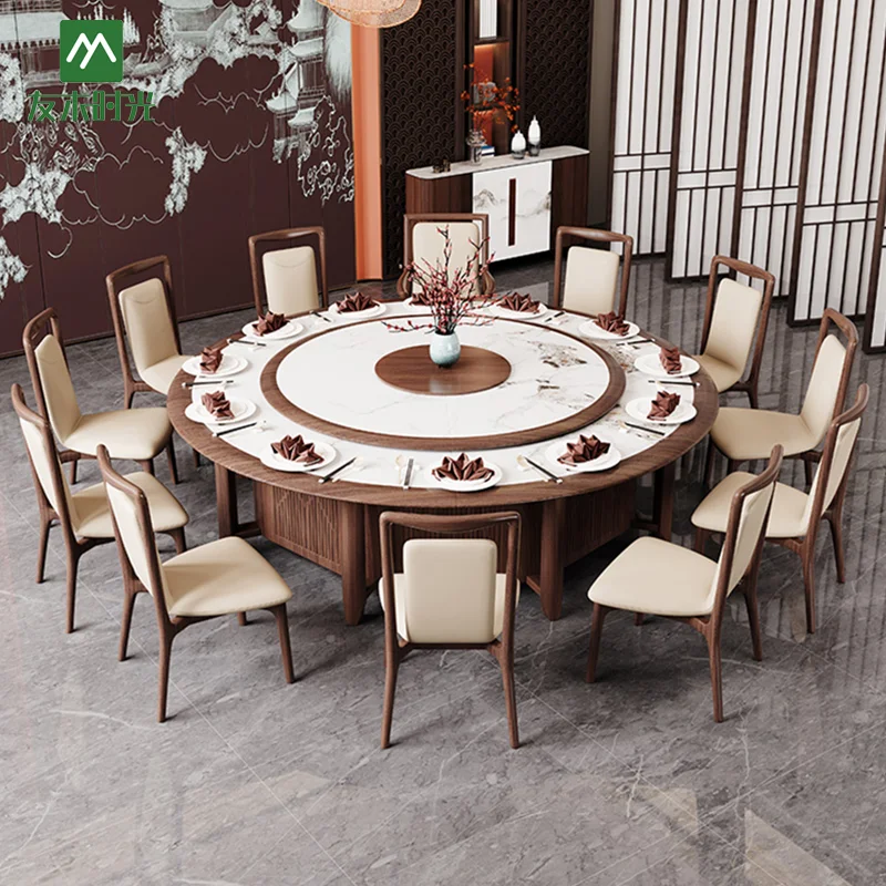 A Superior Dining Experience: The hotel round table features a motorized rotating tabletop, allowing every diner to easily access a variety of dishes and enhancing dining convenience.
