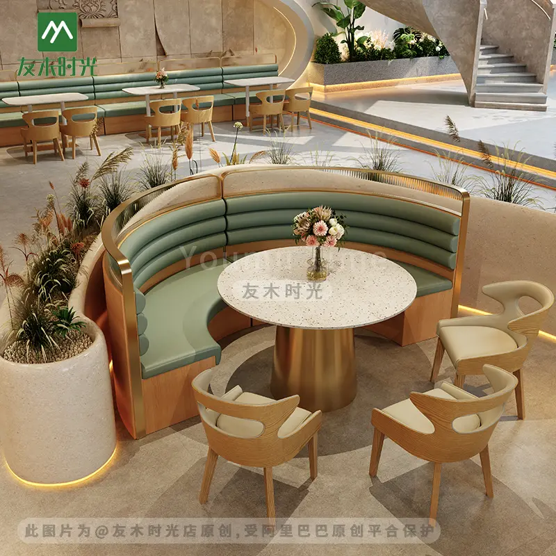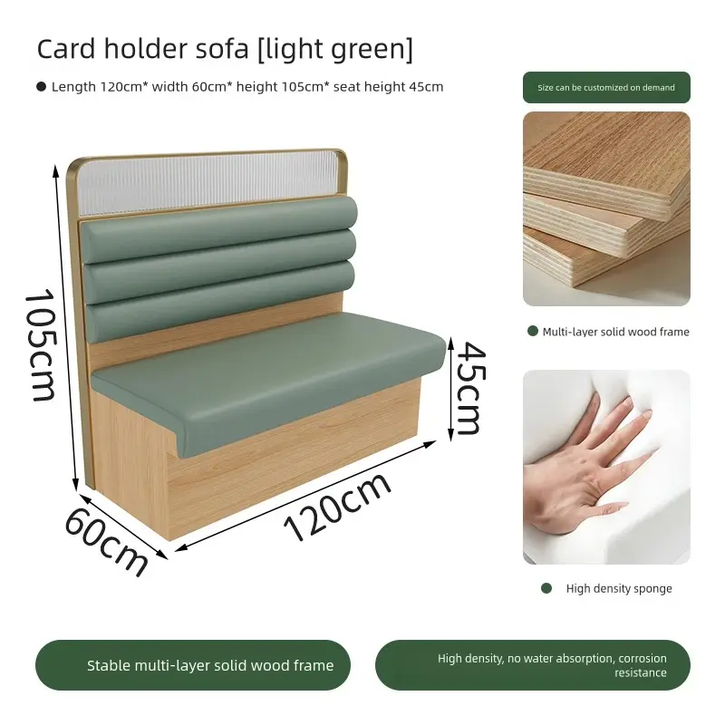 Flexible Combination: These commercial restaurant chairs are highly modular and flexible, offering a variety of components, such as L-shaped booths, single/multi-person sofas, round/rectangular tables, and wooden frame chairs. This allows for flexible configuration and a functional design that easily adapts to any layout, whether in a restaurant, cafe, or home dining area.
