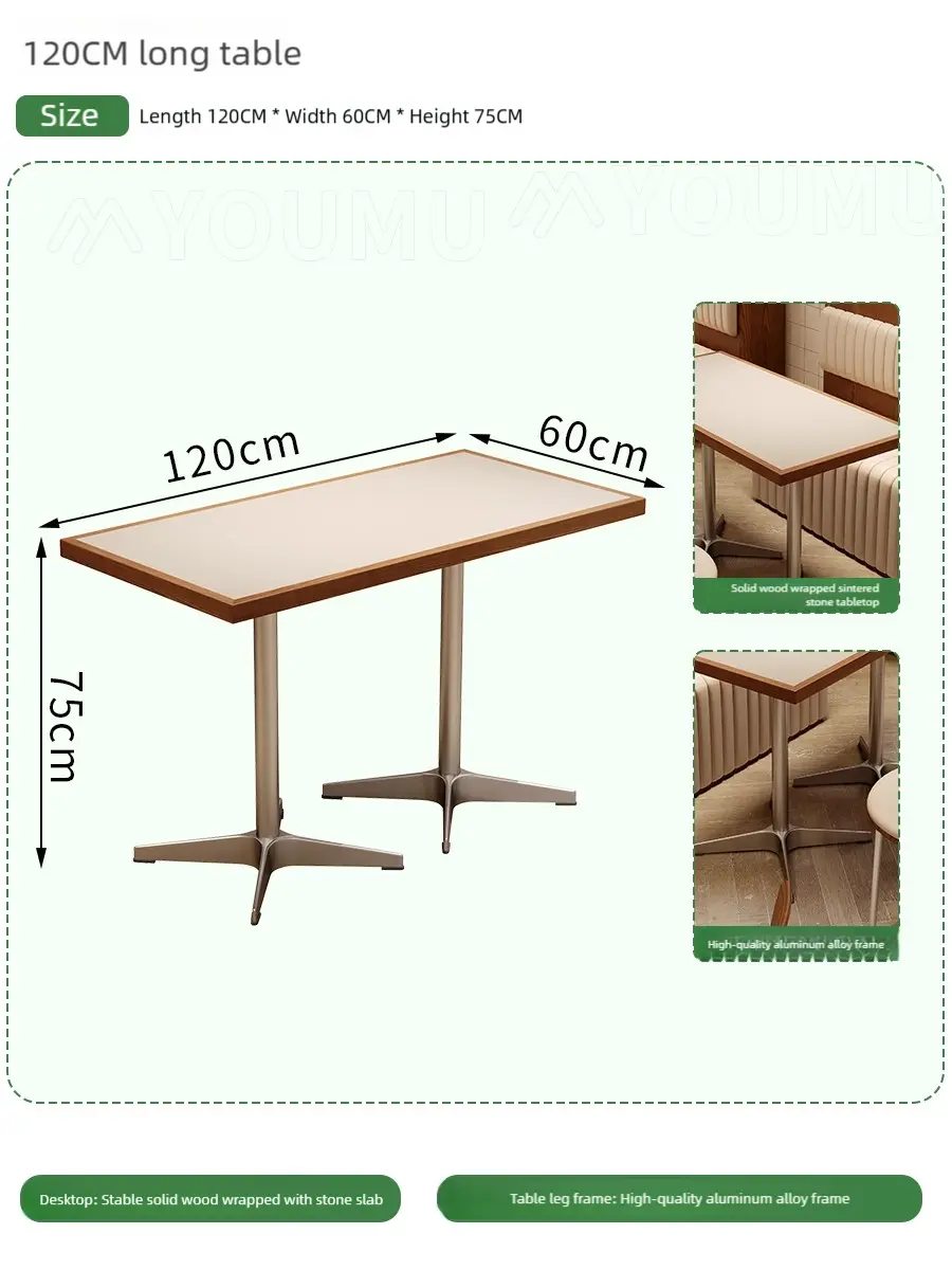 High Quality Materials: The restaurant furniture is made of multi-layer solid wood plywood (excluding liquid glue), which is durable, stable, and comes with corrosion-resistant silver metal table legs. The tables are wrapped in scratch-resistant sintered stone and solid wood, while the chairs and sofas are made of skin-friendly leather or breathable fabric, with exquisite stitching.