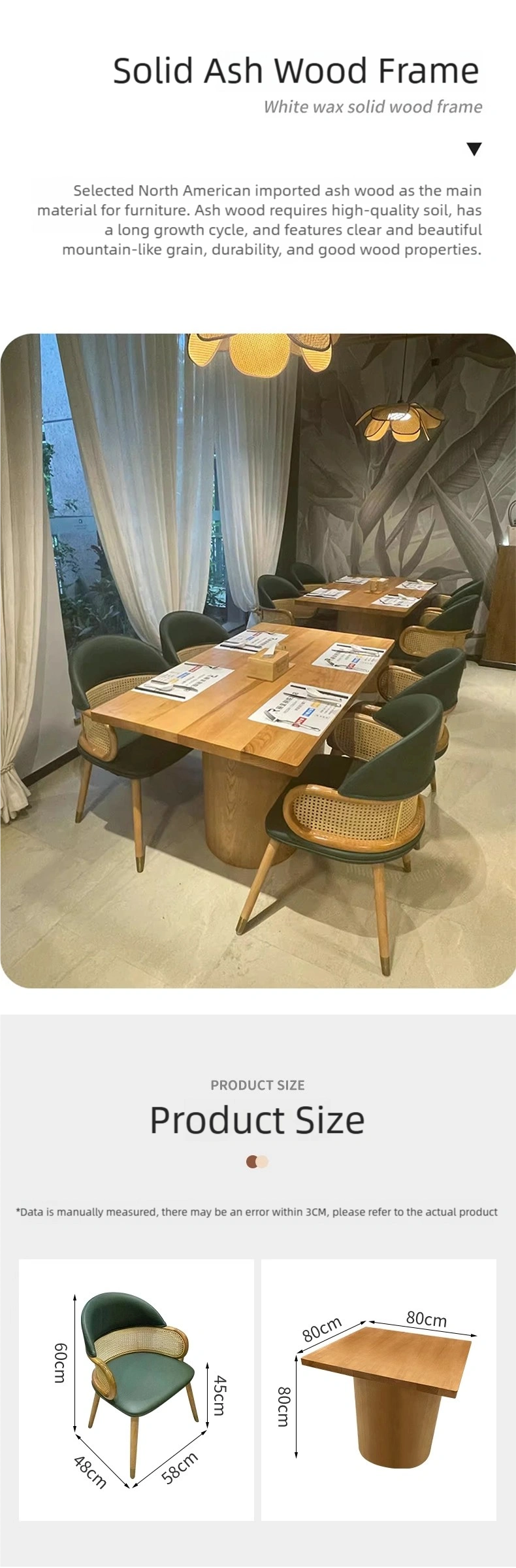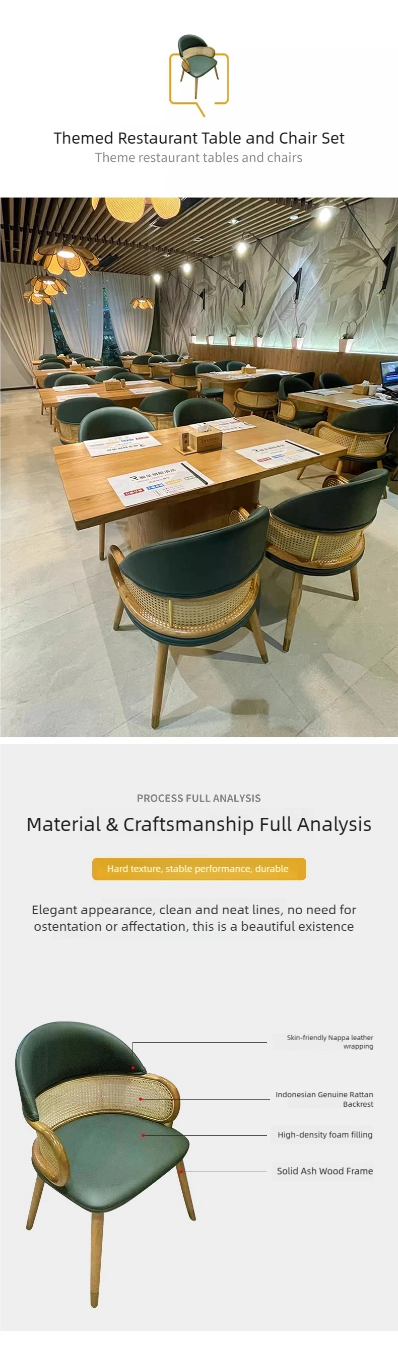 - Aesthetic Appeal: This table and chair set combines modern elegance with natural elements, making it suitable for upscale restaurants, cafes, hotels, or modern dining establishments.