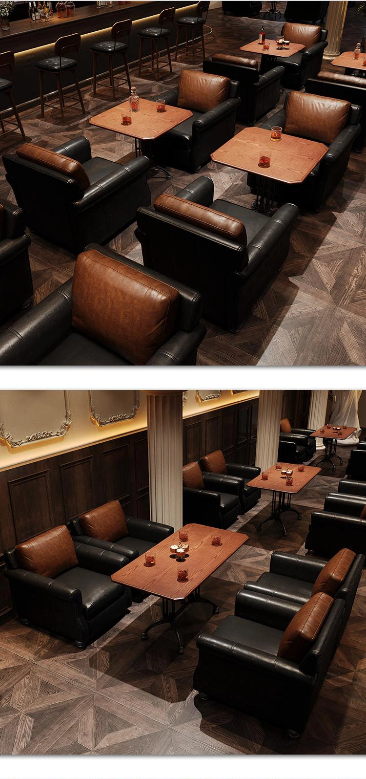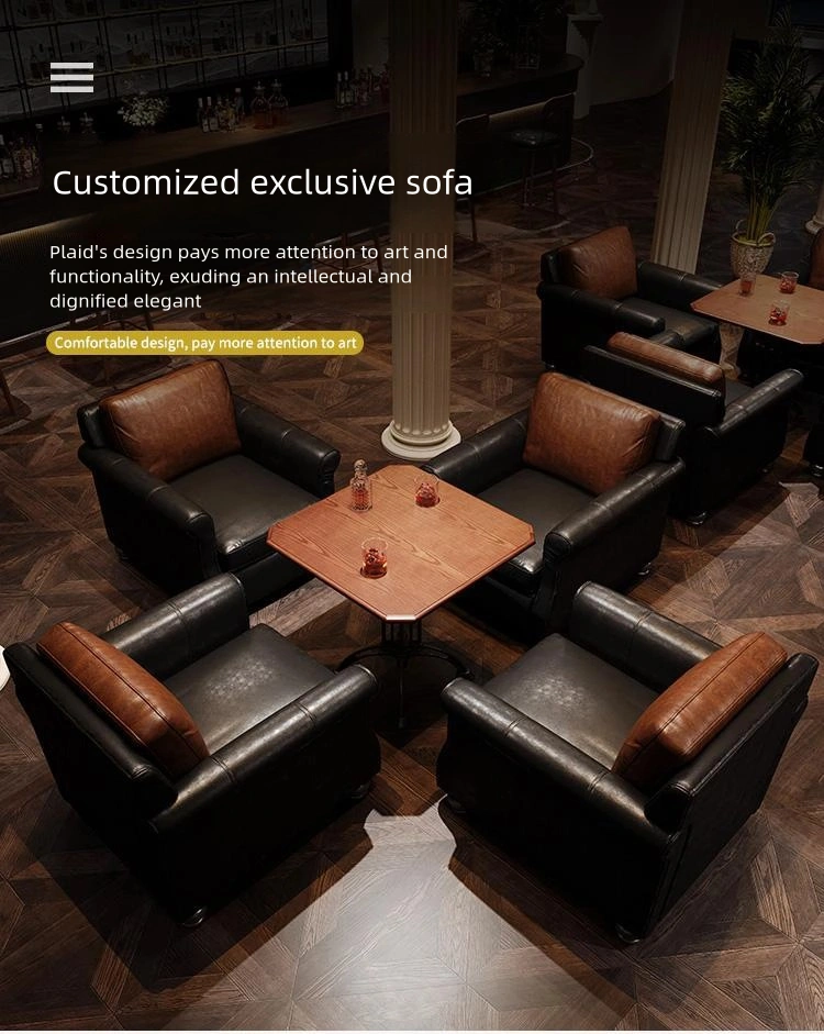 Wholesale pub table and sofa set, featuring a vintage aesthetic design, will elevate the style of your bar, pub, or lounge. This product perfectly blends vintage charm with modern functionality, making it ideal for bars, cigar lounges, cafes, or entertainment venues.