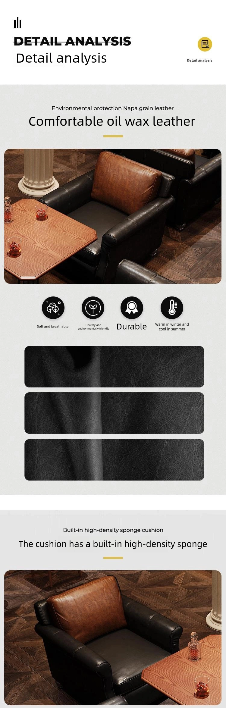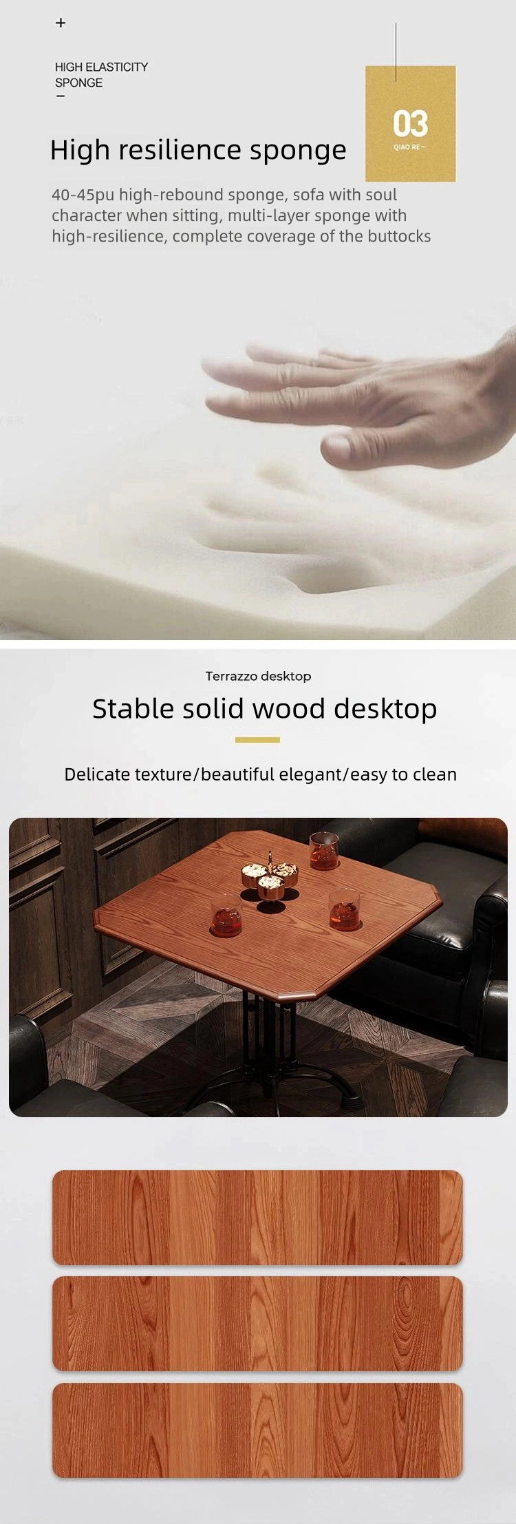 | Booth | Wooden frame + eco-friendly oil-waxed leather + high-density resilient sponge |