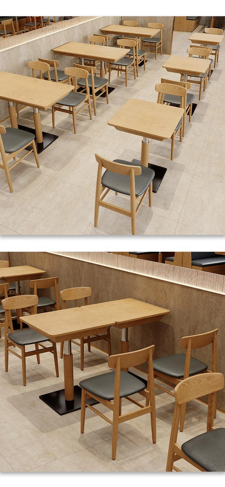 Space-efficient: The compact table dimensions and practical chair design effectively utilize floor space, making them ideal for small noodle shops, fast-food restaurants, and high-density dining areas.