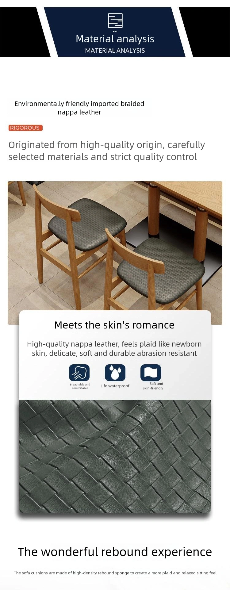 | Booth | Multi-layer solid wood frame + skin-friendly Nappa leather wrapping + high-density rebound sponge |