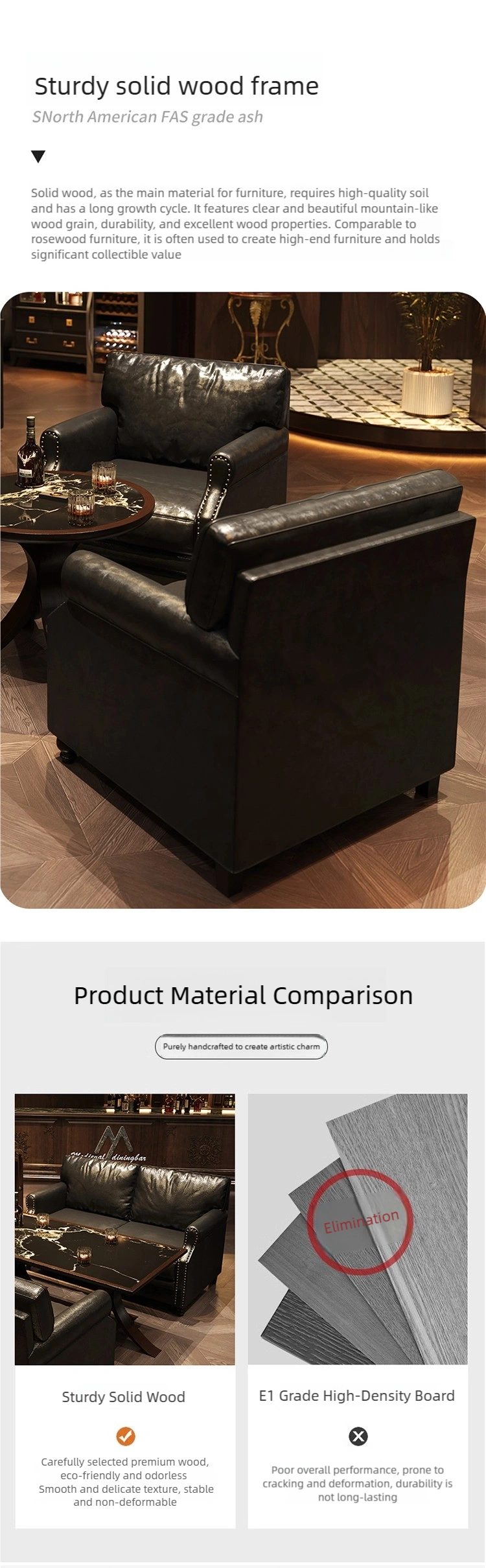 | Booth | Wooden frame + eco-friendly oil-waxed leather + high-density resilient sponge |