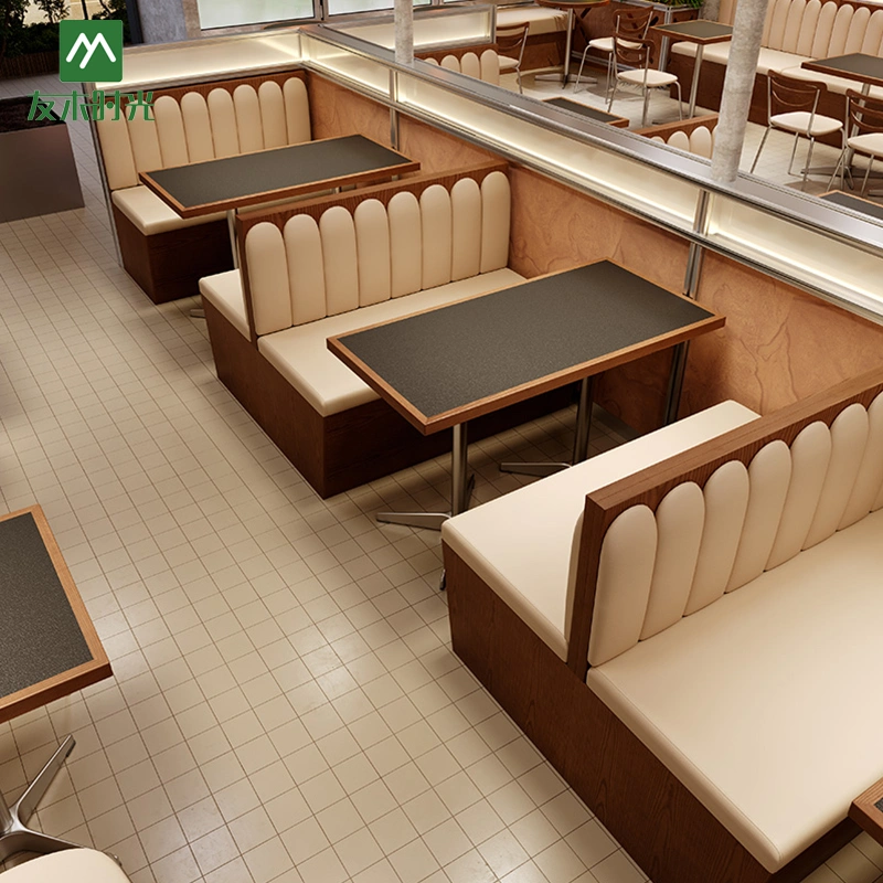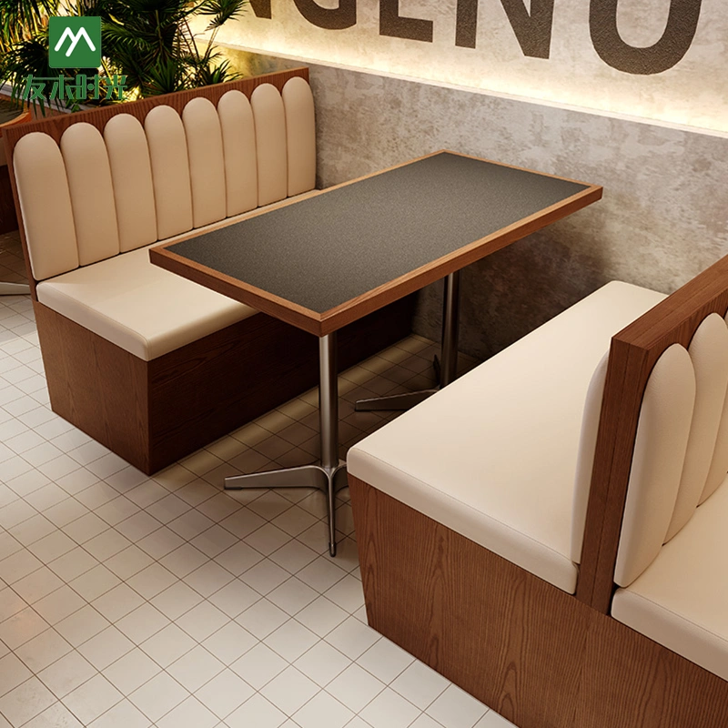 Booth Seating with Shell-Patterned Upholstery: The backrest of this restaurant dining furniture features a semi-cylindrical vertical division design. This design, commonly known as the “shell pattern,” not only adds visual depth and rhythm but also provides excellent lumbar and back support.