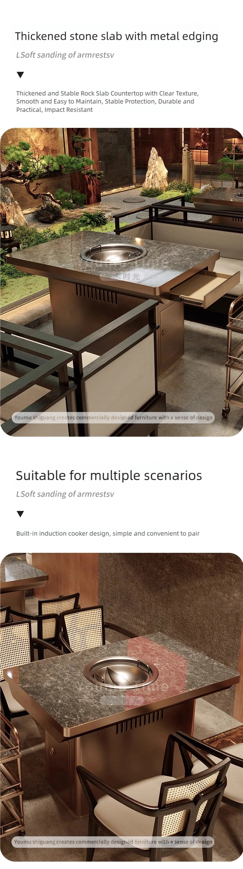 - Optimized for Hot Pot & BBQ Layouts: The table dimensions and structure facilitate the installation of built-in electric hot pot stoves, induction cookers, or grills, while providing ample legroom and safe distances for diners.