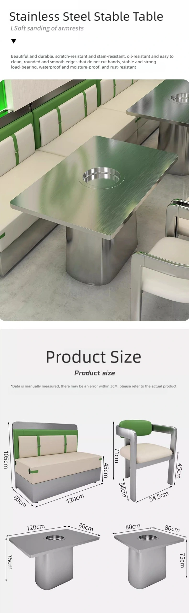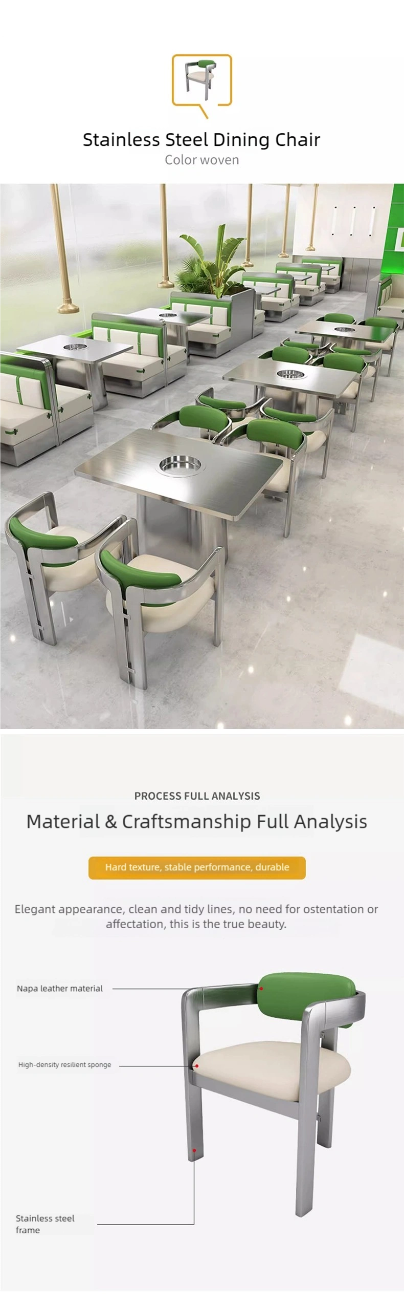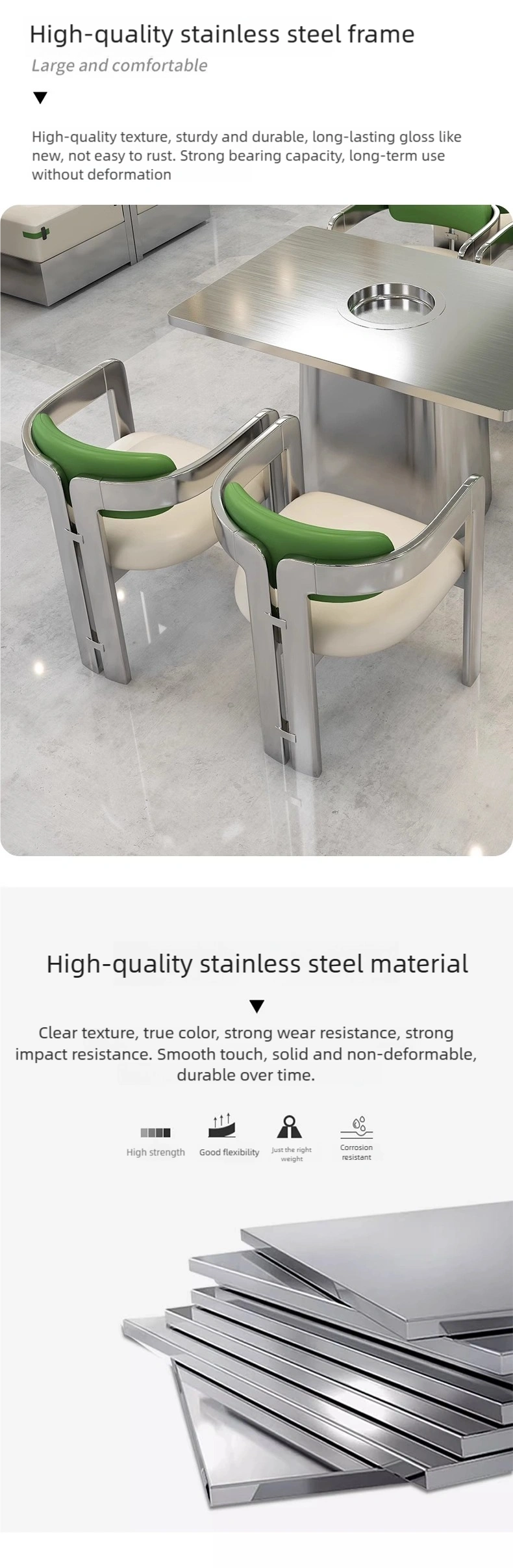 Durable and Long-Lasting Construction: This hot pot table and chair set is made of high-quality stainless steel, ensuring durability and a sturdy structure. The stainless steel frame offers excellent resistance to rust and corrosion, capable of withstanding the daily wear and tear common in busy restaurant environments.