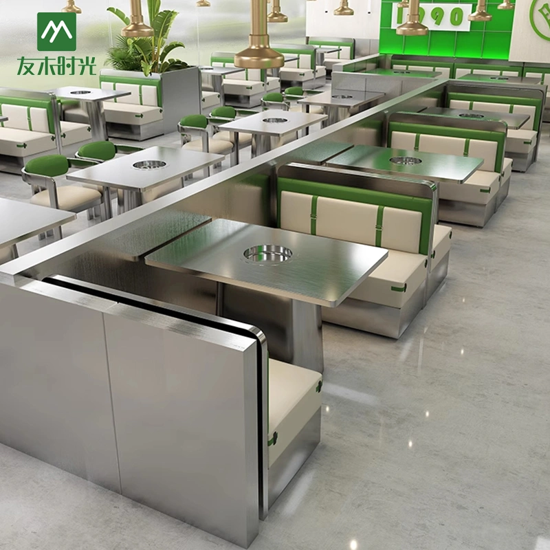 Wholesale Industrial-style Themed Stainless Steel Hot Pot Restaurant Table and Chair Sets