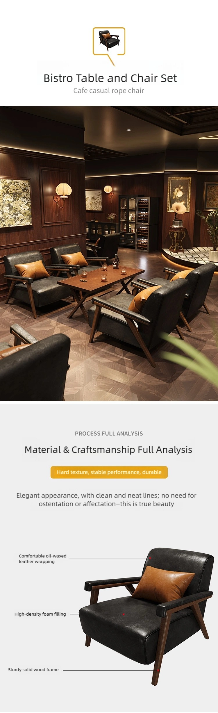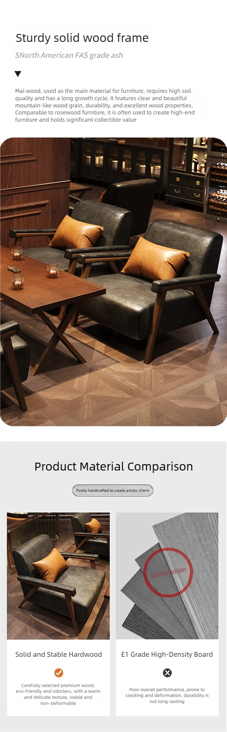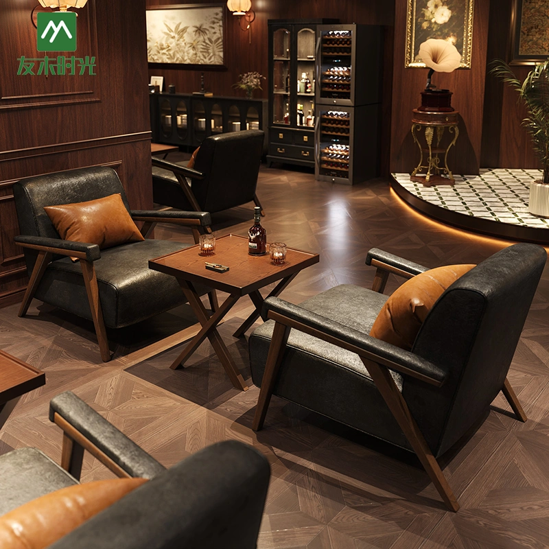 Wholesale tavern bar single sofa set. Bulk purchases are welcome to enhance your pub’s atmosphere. The deep leather texture and warm, solid wood frame intertwine, infusing your reception space with a calm yet powerful professional aura. Whether for a deep business discussion or relaxation, it provides perfect support and comfort. We offer OEM and ODM customization services, bulk supply solutions, and factory quotes. Contact us today!