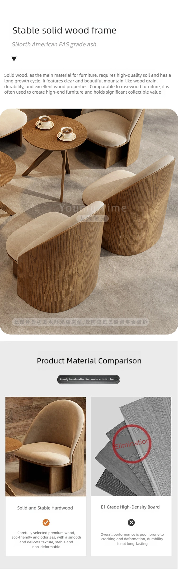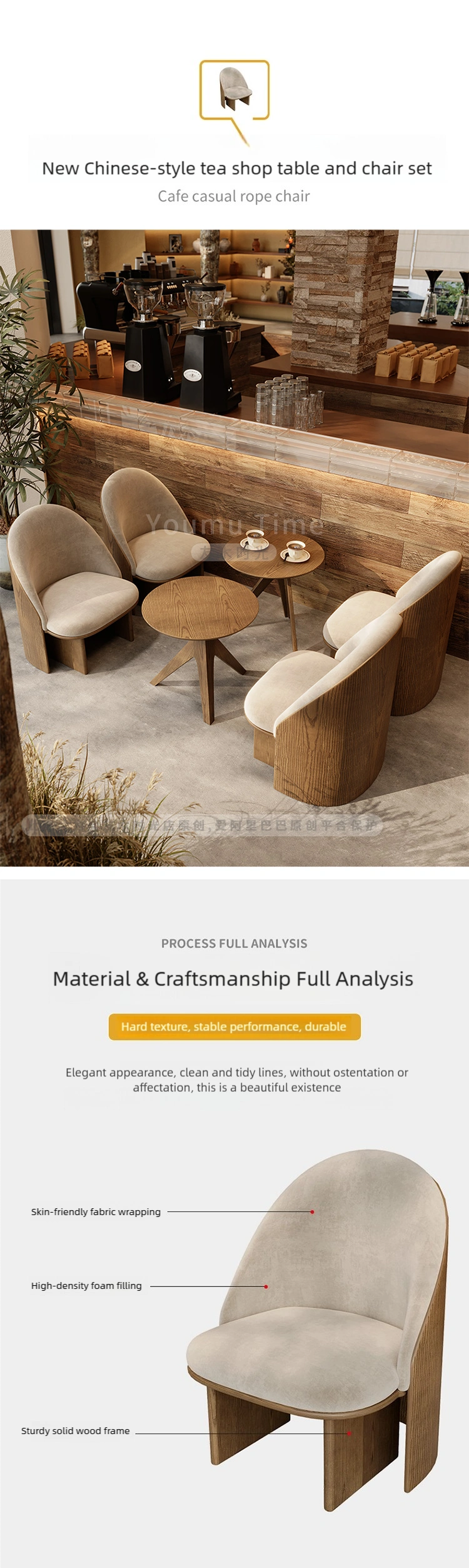 Skin-friendly and breathable materials: The coffee shop seats are made of high-density foam, offering a comfortable feel and easy cleaning.