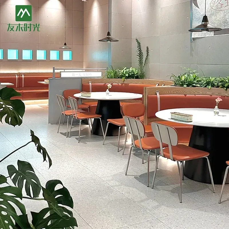 Youmu Shiguang Furniture is a professional restaurant furniture manufacturer serving global B2B buyers with stable production capacity and reliable lead times. From hot pot restaurants to bakeries, cafés, and healthy food chains, we engineer furniture built for real commercial use—heat resistance, stain-proof surfaces, heavy-duty frames, and easy-clean designs.
