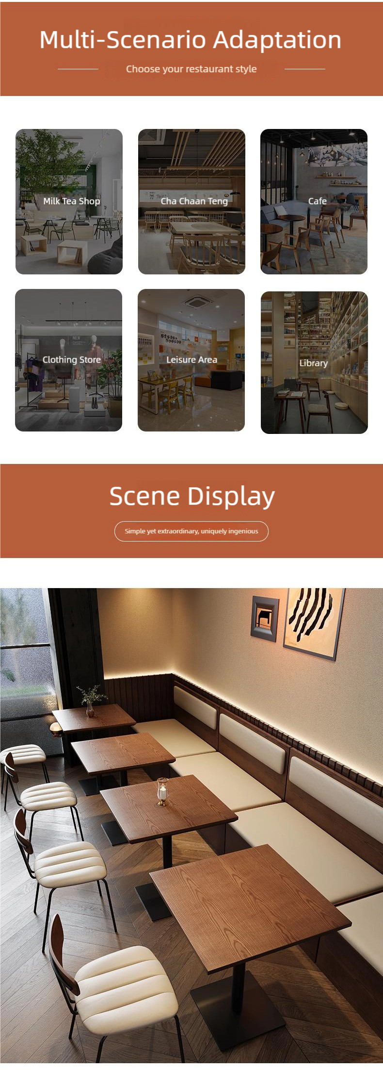 Versatile: This furniture is suitable for modern style commercial spaces, such as coffee shops, bakeries, and lounge areas.