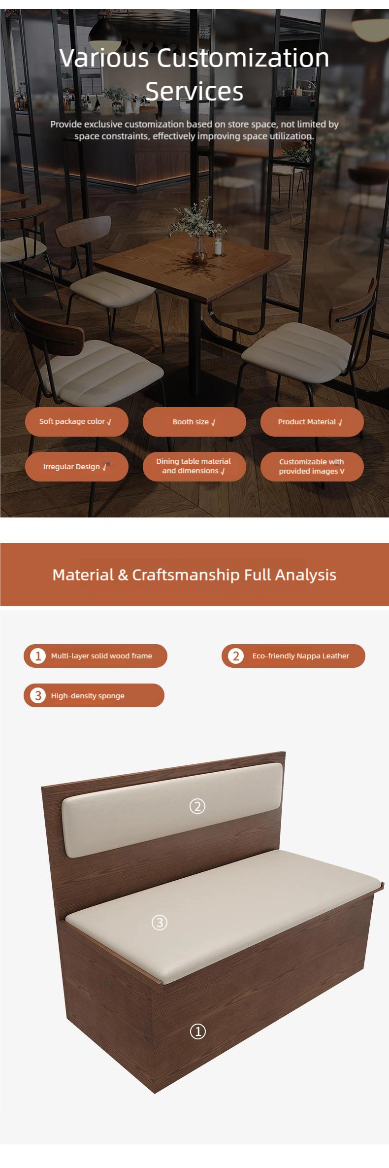 Customization Options: В качестве professional coffee shop furniture manufacturer, customization of sizes, colors, cushions, and materials is supported, meeting the personalized design needs of coffee shops, restaurants, or commercial spaces.