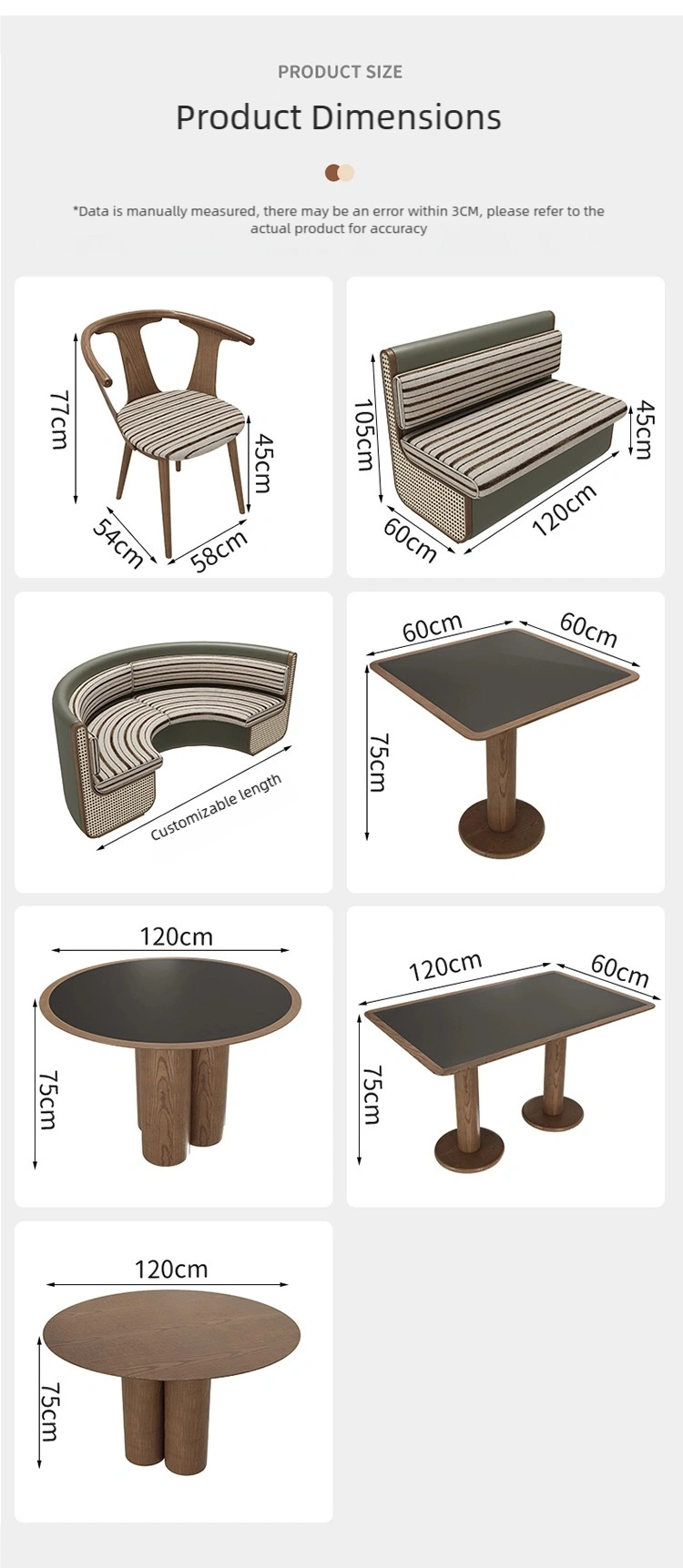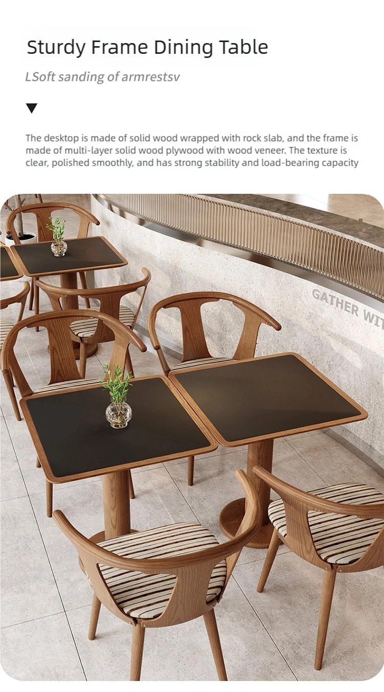 Wholesale restaurant furniture suitable for commercial spaces. Dining tables feature sturdy metal bases and solid wood-veneered sintered stone tabletops; chairs and booths boast premium wooden frames and comfortable, durable fabric upholstery. This collection is ideal for trendy restaurants and cafes. Bulk orders are welcome.