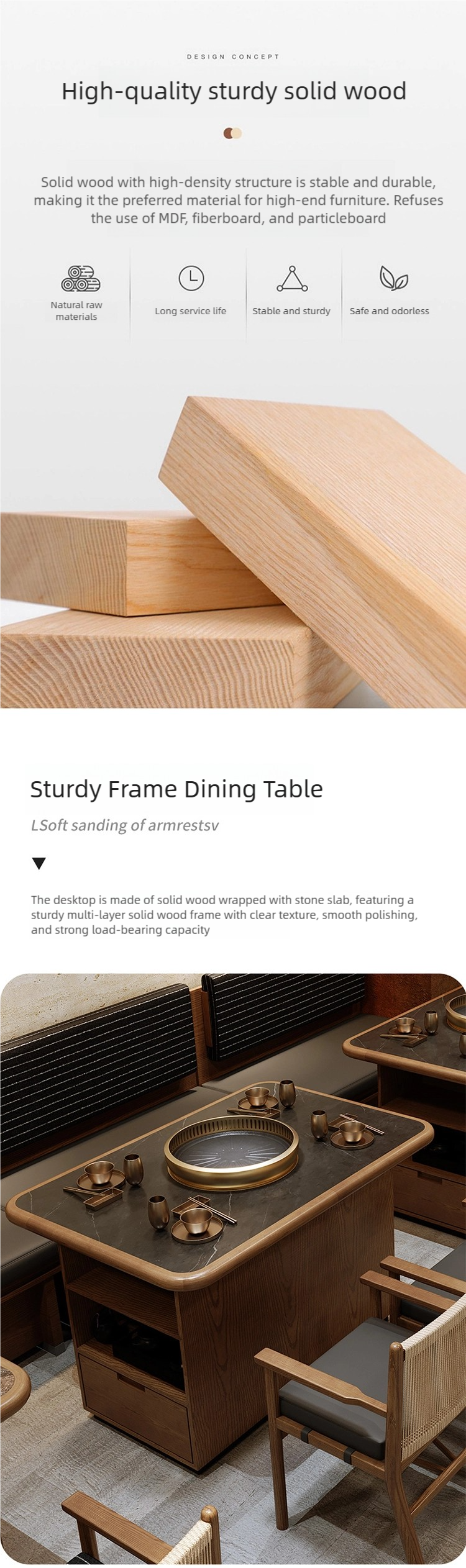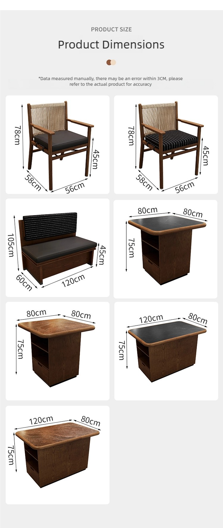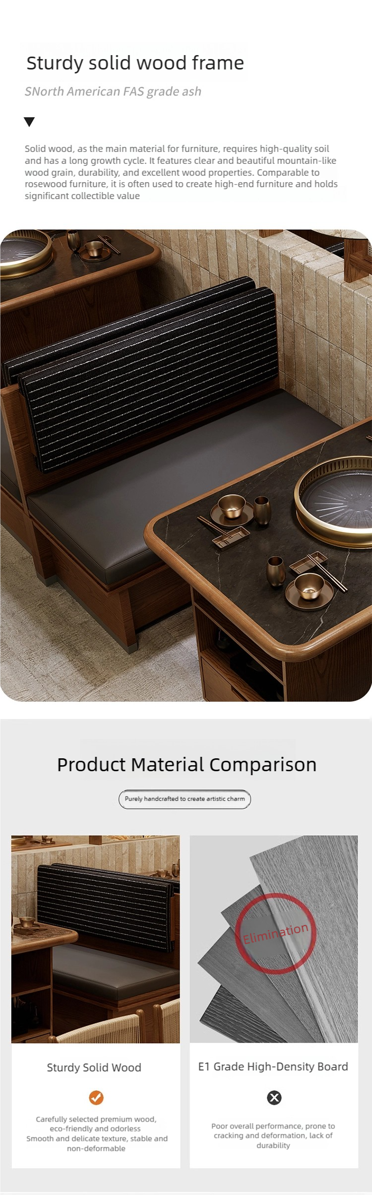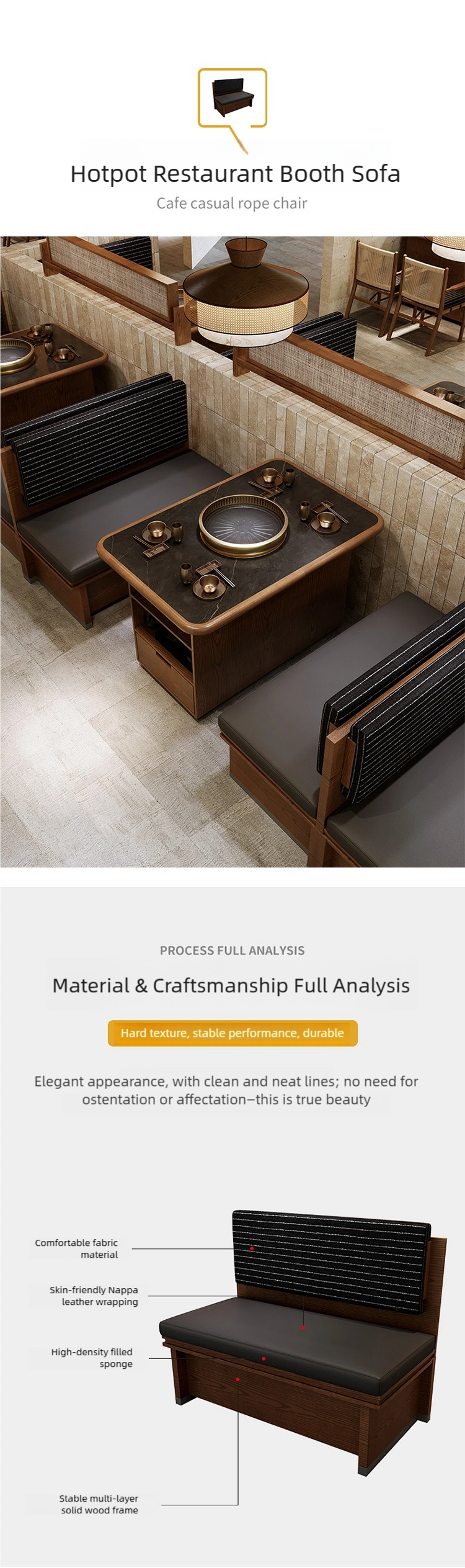 We оптовая продажа мебели для ресторанов. Our dining tables feature integrated induction cooktops to meet diverse customer needs, making them an ideal choice for hot pot restaurants. Our booth seating and chairs boast sturdy wooden structures, ensuring durability and strong load-bearing capacity. Customization of materials and sizes is available for all tables and chairs.