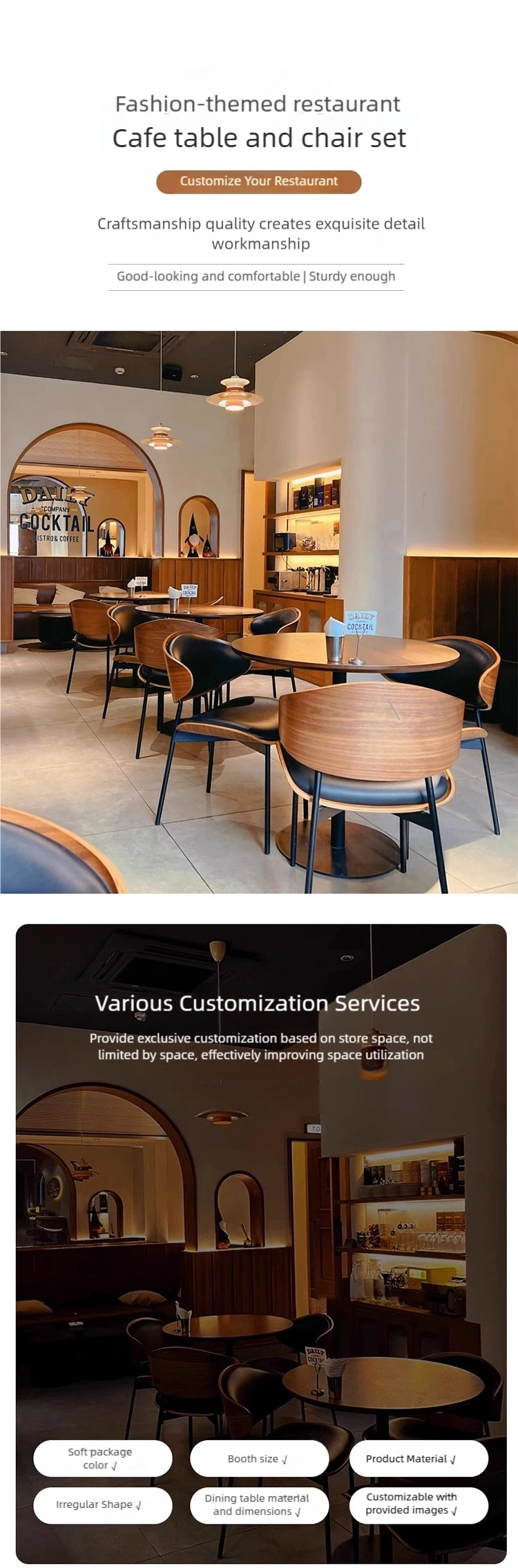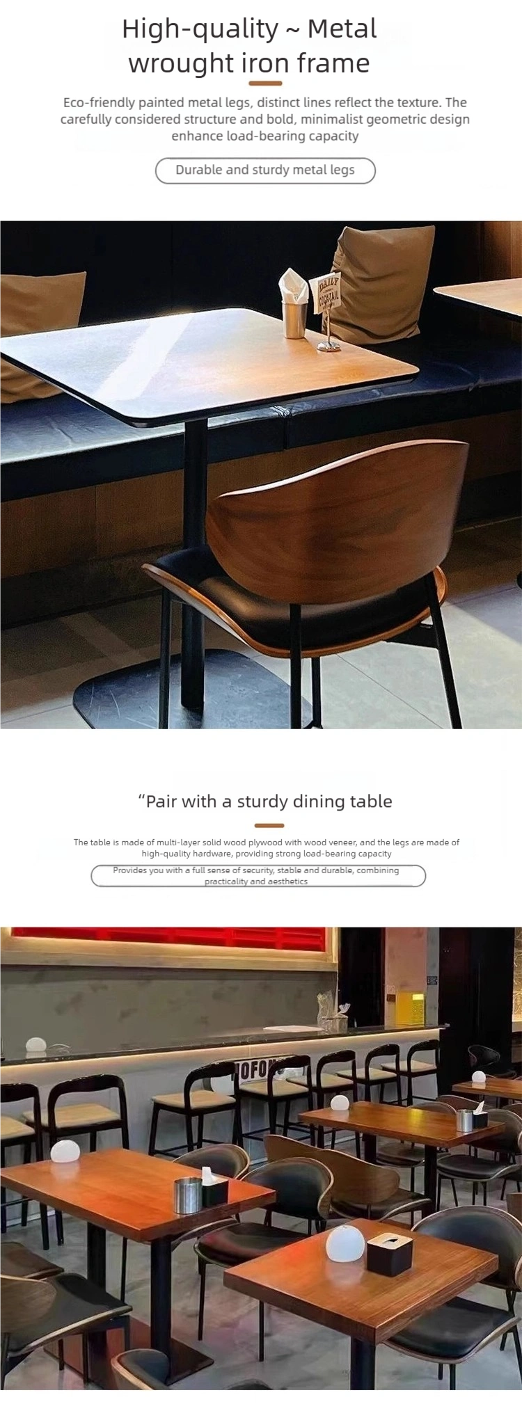 Wholesale coffee shop furniture suitable for commercial spaces. Tables are made entirely of beautiful and durable wood; chairs feature wooden frames and comfortable, durable leather, ensuring longevity and significantly reducing replacement and maintenance costs. This series is ideal for bars and cafes. Bulk orders are welcome.