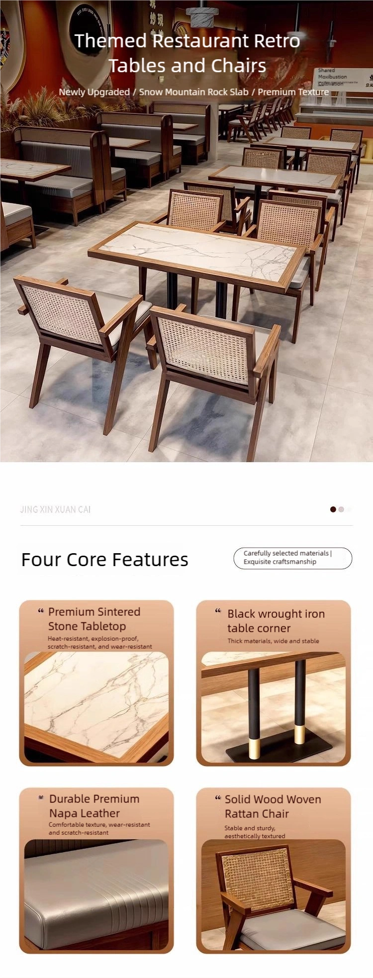 Southeast Asian-inspired design: The booth seating and chairs of our Southeast Asian restaurant furniture feature a wooden frame and woven rattan backrests, which are not only aesthetically pleasing but also sturdy and durable.