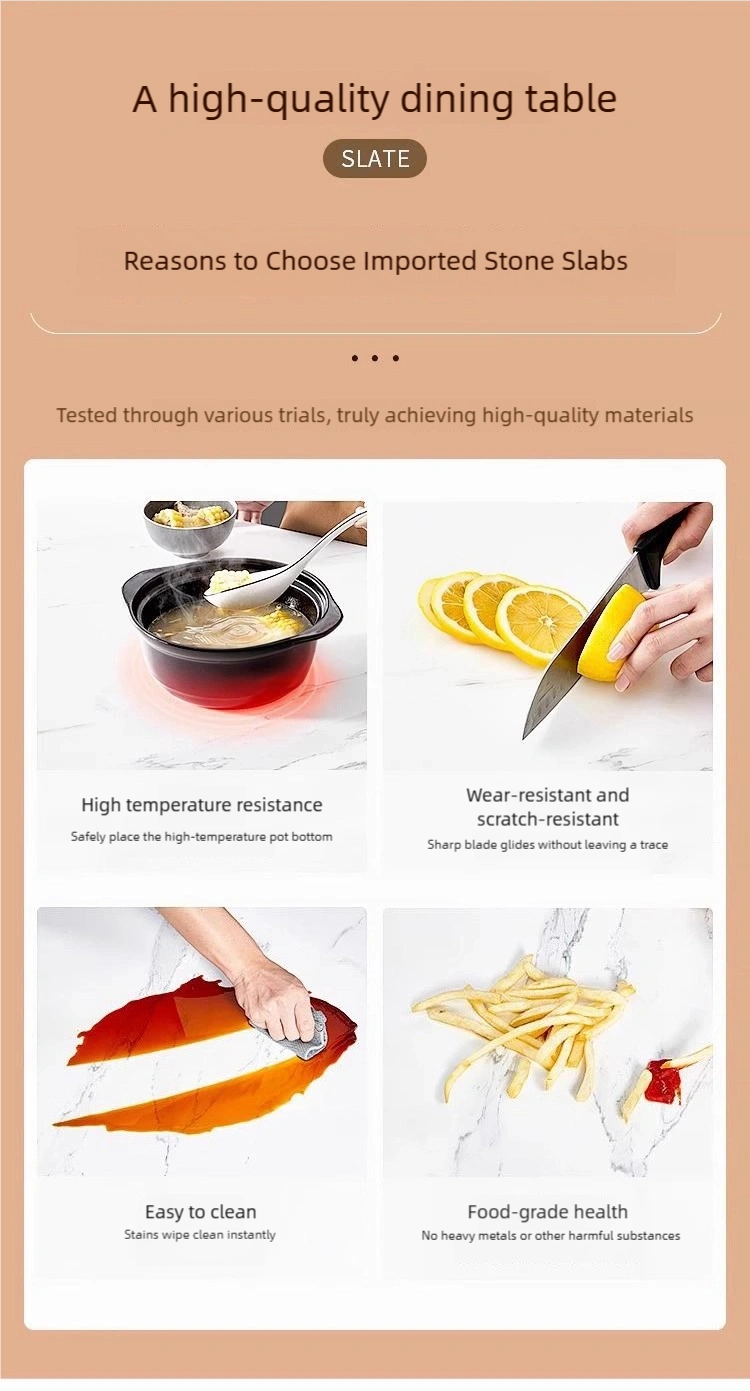 Easy-to-clean tables: The sintered stone tabletop material makes surface stains easy to clean.
