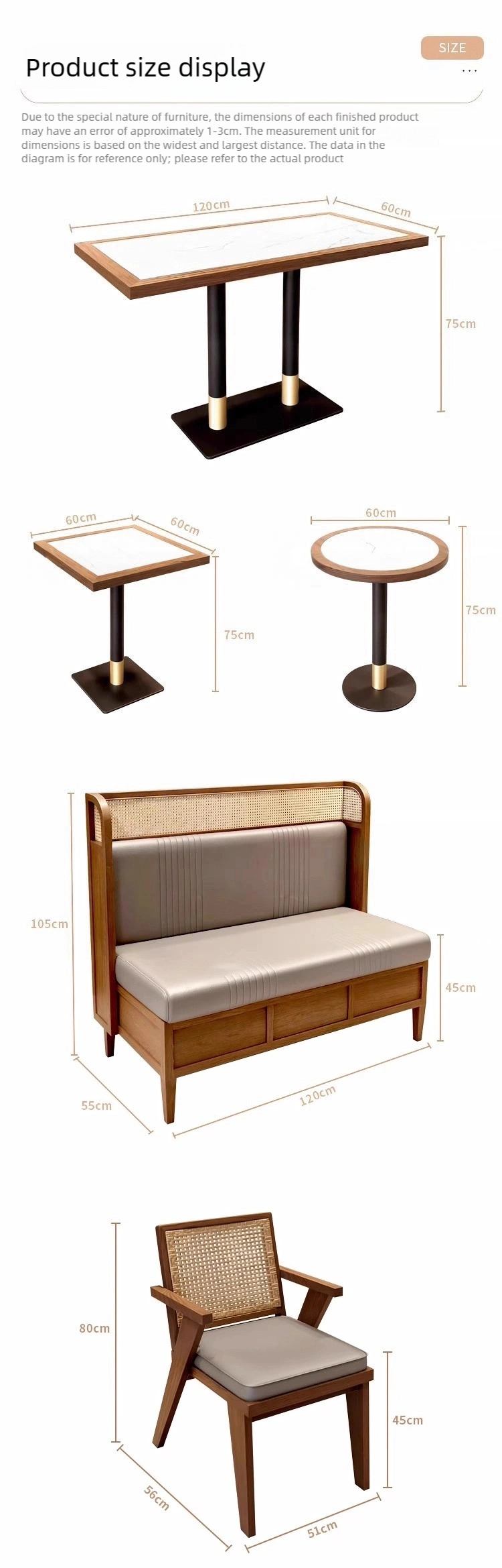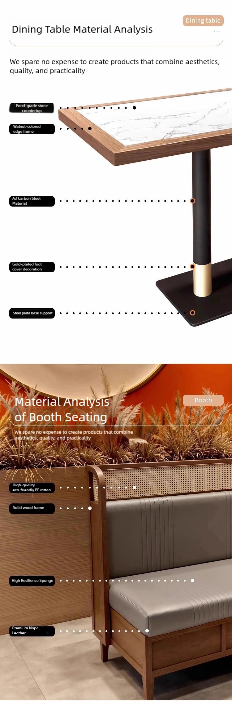 Soft and comfortable seating: The seat cushions of both the chairs and booth seating are made of high-quality, scratch-resistant, and durable leather, and are filled with 400-D high-density sponge, making them soft, comfortable, resistant to sagging, and long-lasting.