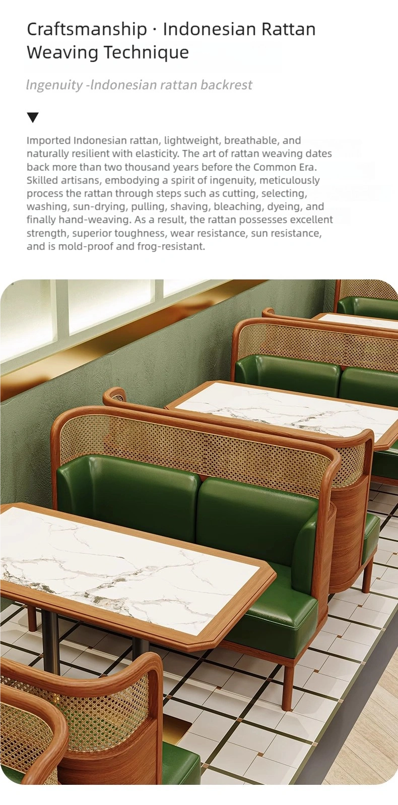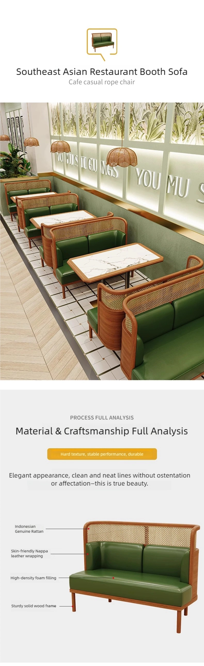 Unique Style Design: This restaurant furniture set features a Southeast Asian style, perfect for themed restaurants serving Thai, Vietnamese, and other cuisines.
