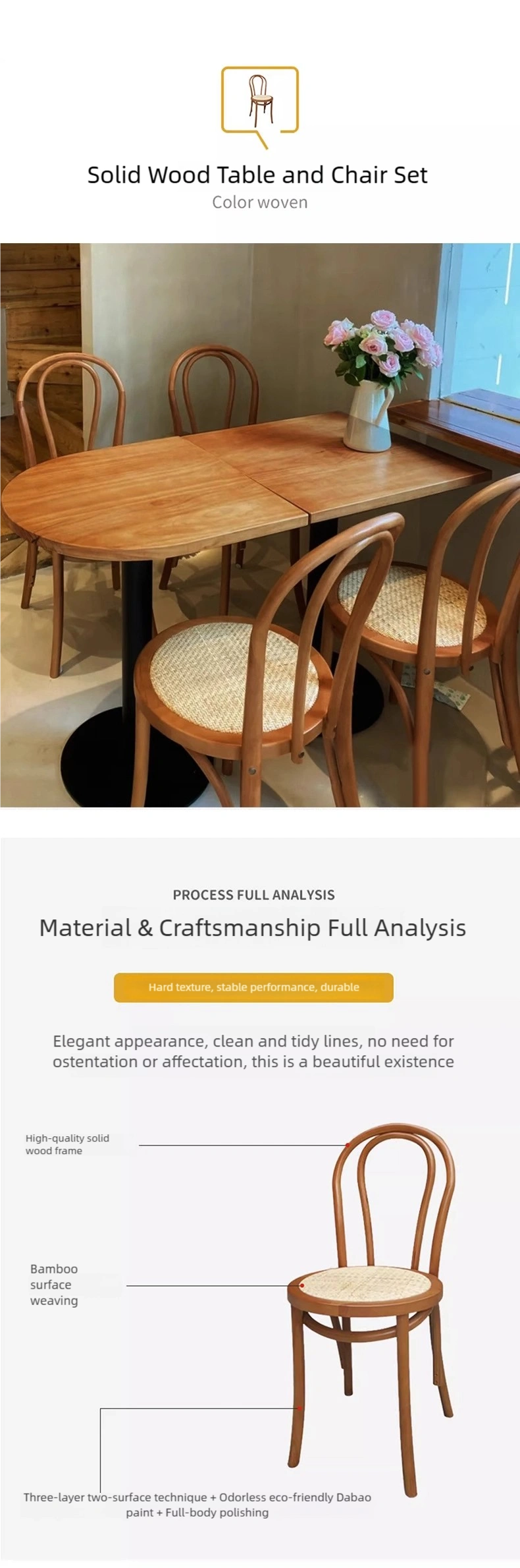 Creating Ambiance: The entire set of cafe furniture exudes a tranquil, warm, and natural style, easily creating a tasteful dining or relaxation corner.