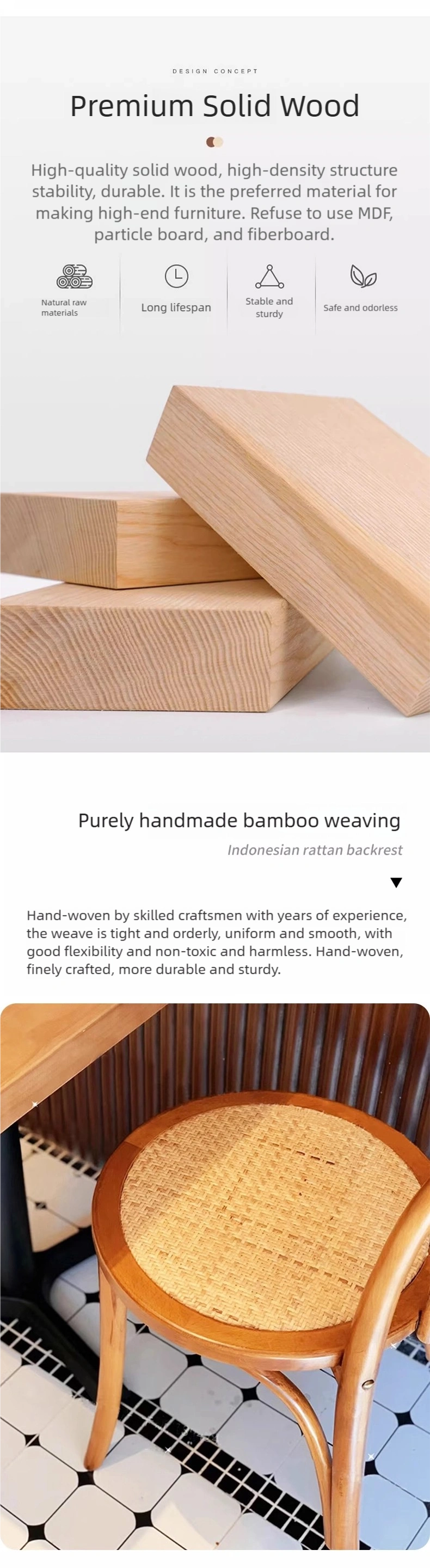 Exquisite Craftsmanship Details: From the polishing of the wood to the meticulous and even weaving of the surfaces, every detail showcases excellent workmanship. The touch is smooth and warm, and the visual effect is rich in texture.