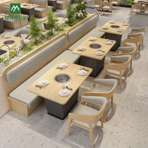 Our stylish wholesale hot pot table and chair set offers flexible seating options for 2-4 people, 4-6 people, and 6-8 people, allowing restaurant owners to easily adjust the layout based on the number of diners, maximizing space utilization and increasing table turnover. This modular hot pot furniture set is sold at factory-direct wholesale prices, making…
