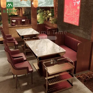 Welcome to purchase our wholesale hot pot restaurant furniture in bulk. Designed specifically for modern hot pot restaurants, this premium hot pot table and chair set combines functionality, durability, and authentic Chinese aesthetics to elevate the dining experience. We are a professional hot pot restaurant furniture manufacturer, and offer comprehensive OEM and ODM services for our…