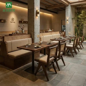 Wholesale restaurant booth seating sets elevate your restaurant and create a high-end dining environment. Inspired by modern minimalism and Japanese interior design, these seating solutions combine natural textures, warm colors, and clean architectural lines to create an elegant and tranquil upscale dining atmosphere. Suitable for high-end tea houses, noodle shops, Chinese restaurants, and Japanese restaurants.…