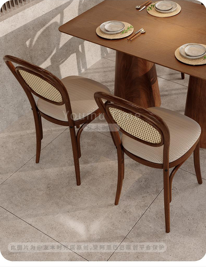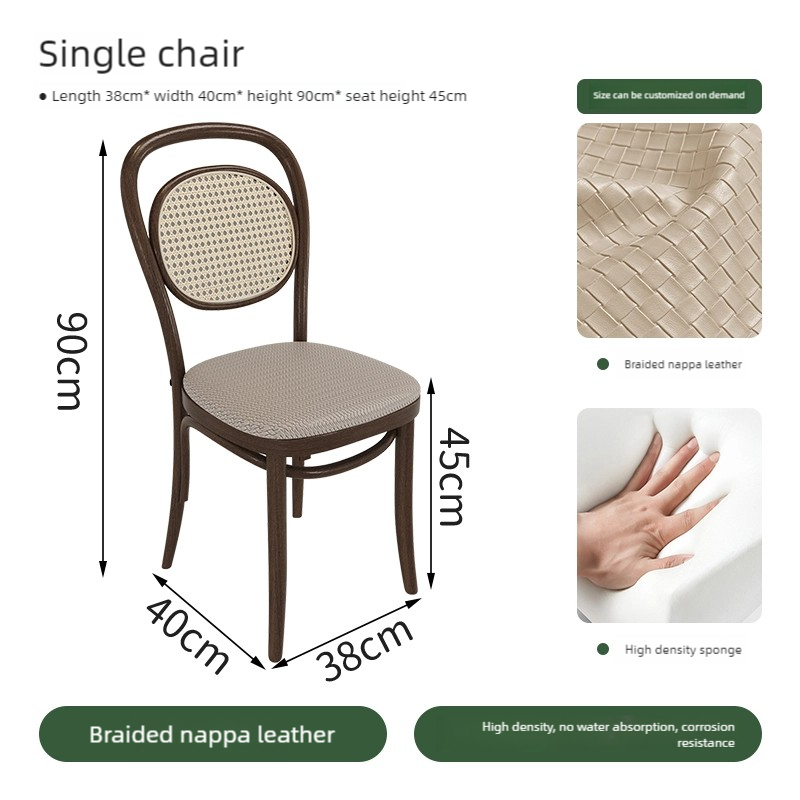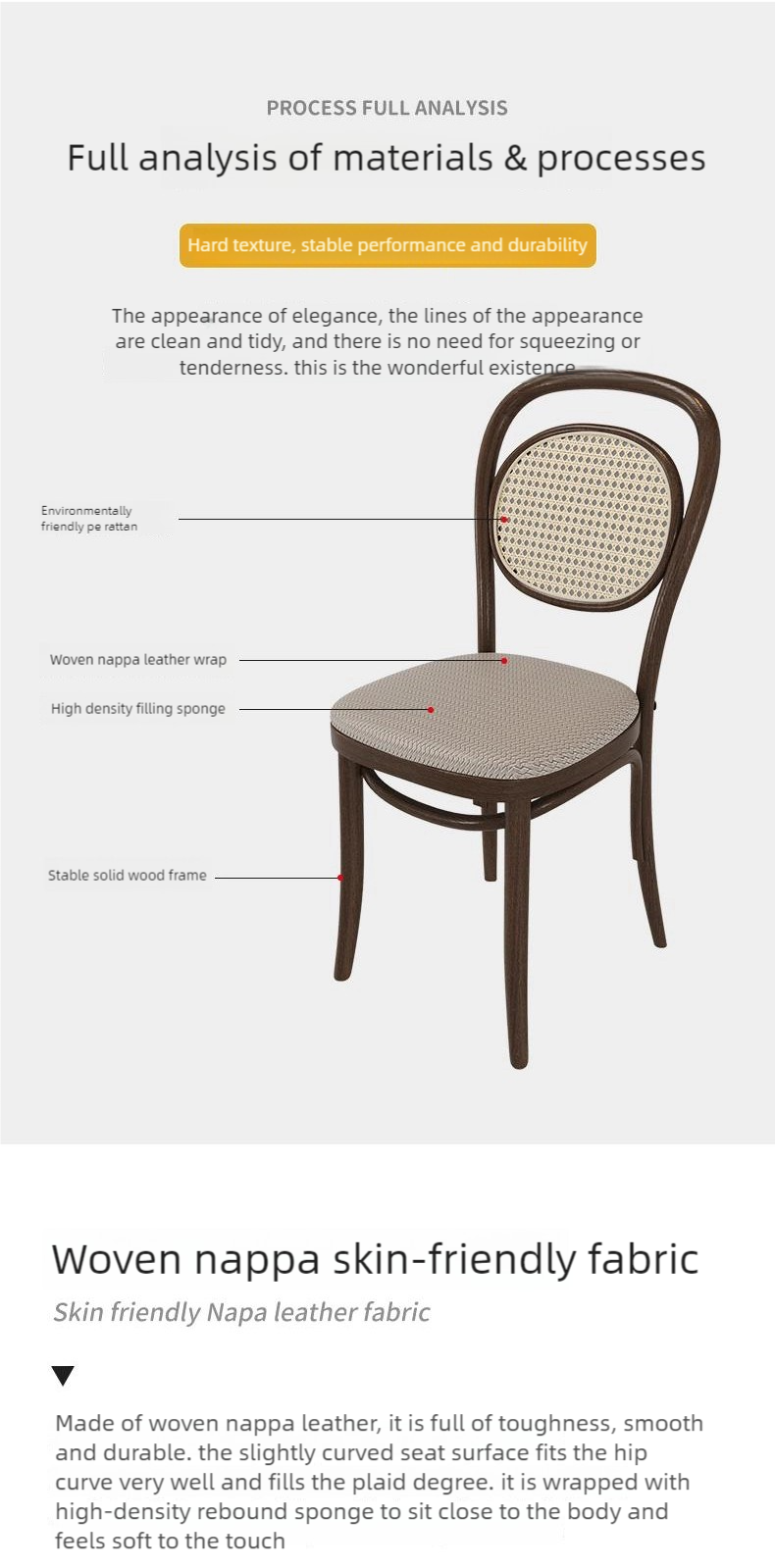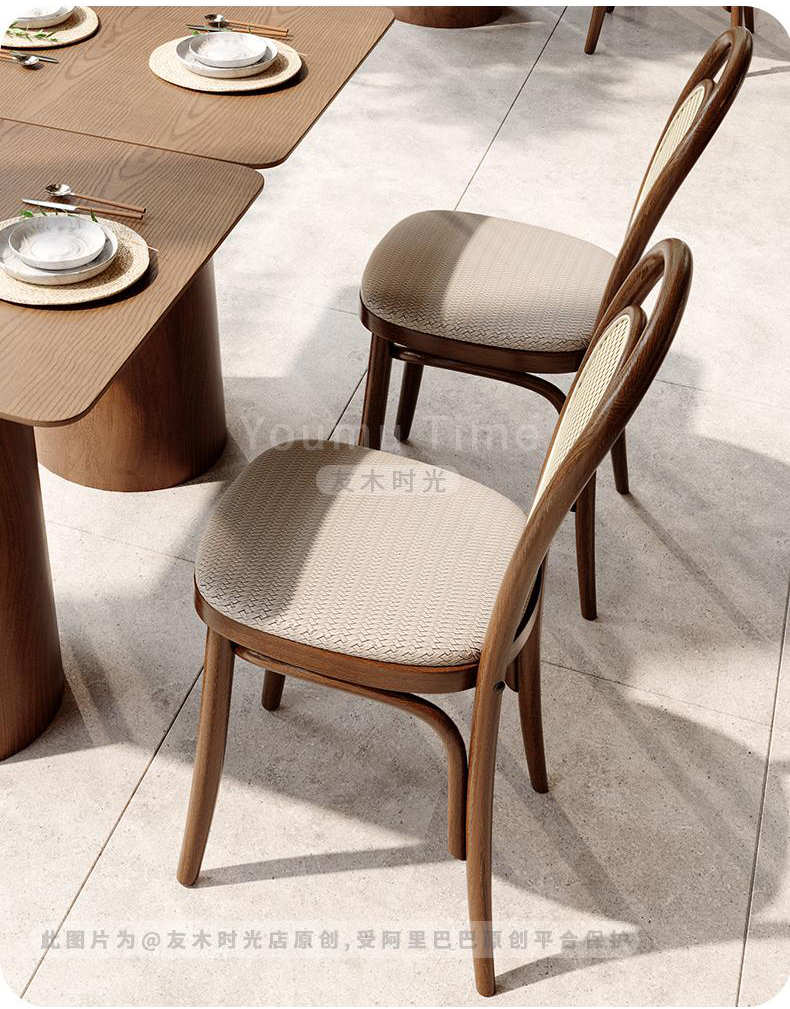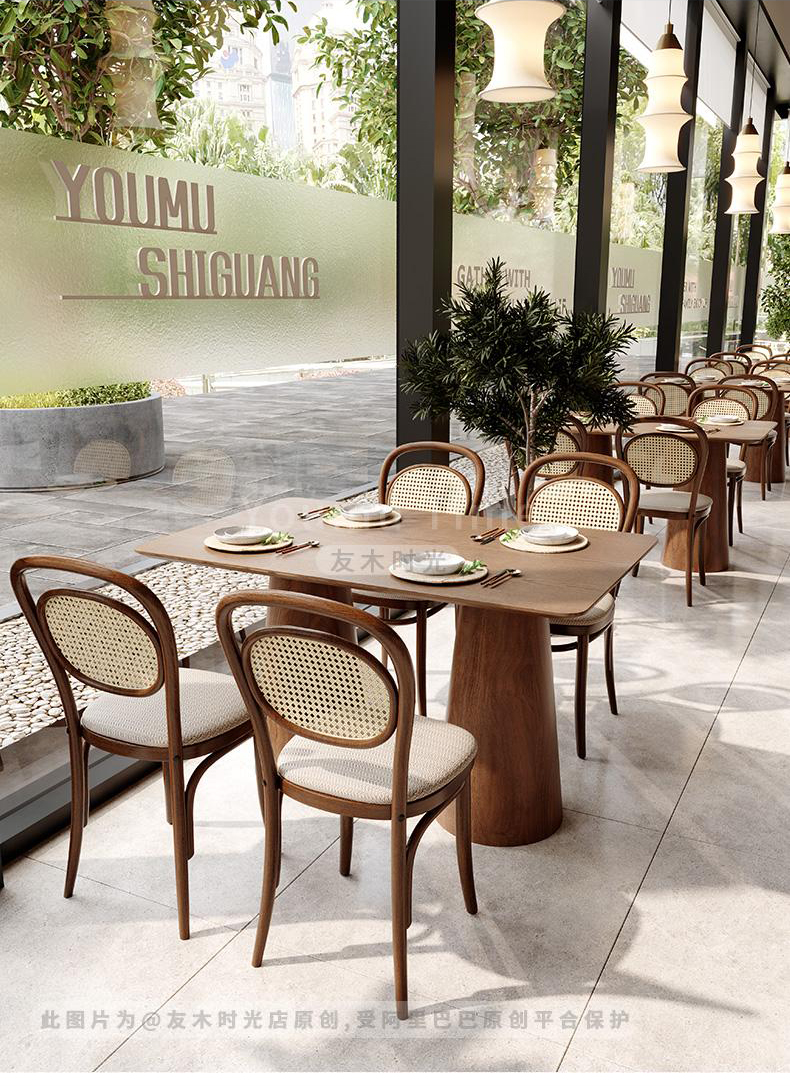 Breathable Handwoven Rattan: The backrest of our themed restaurant chair incorporates natural rattan weaving, enhancing visual transparency while providing a cool, tactile, and organic seating experience.