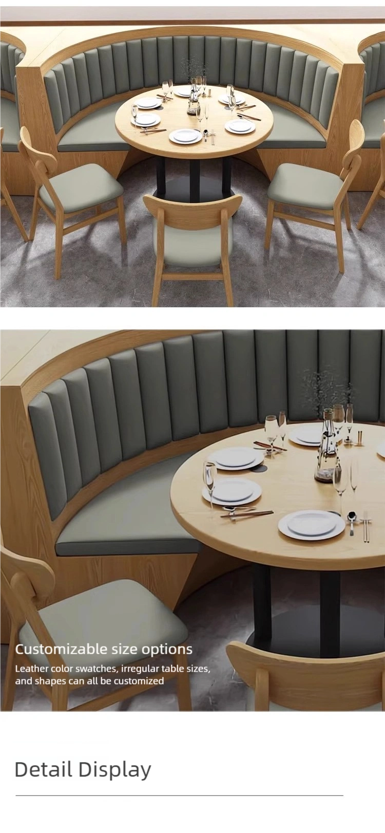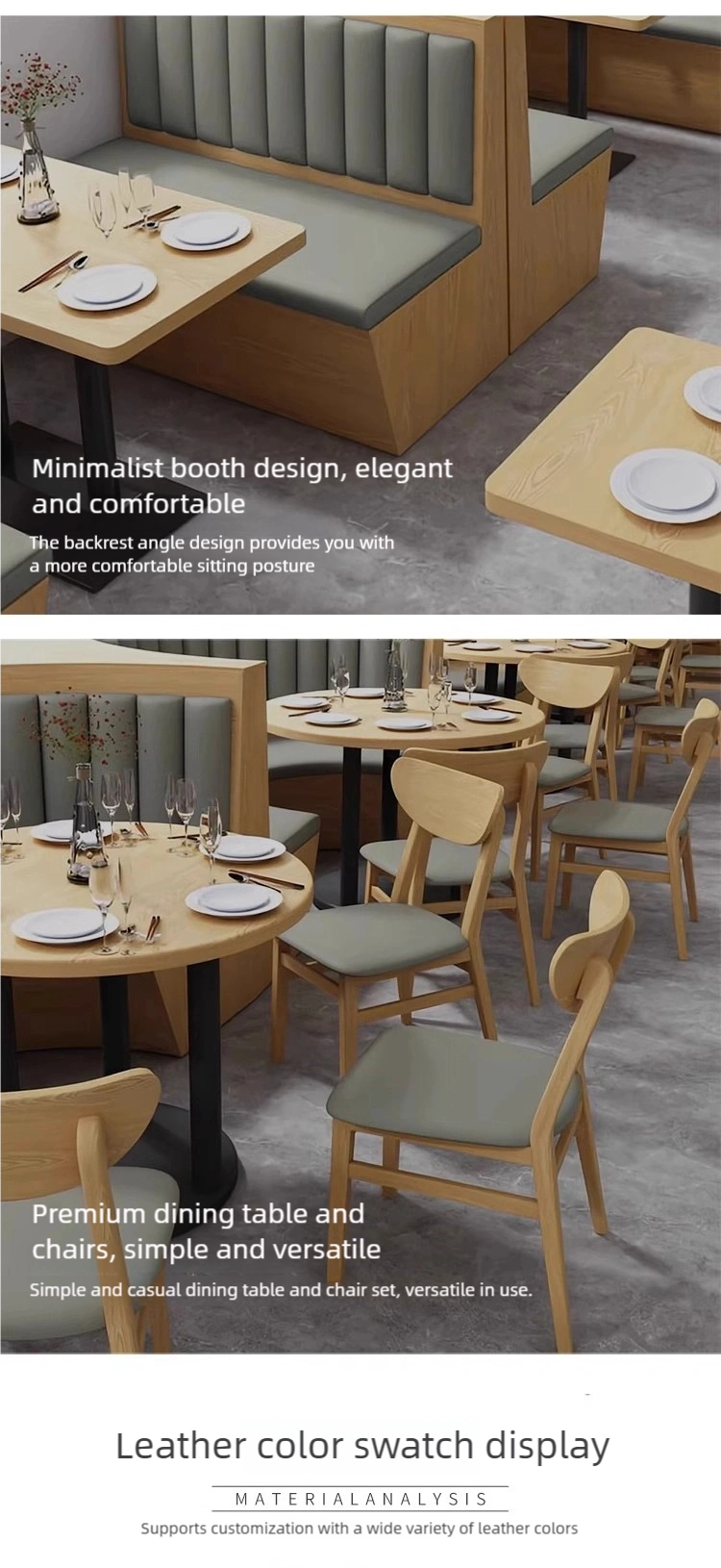 Soft and Comfortable Seating: The chairs and booth cushions are made of high-quality, scratch-resistant, and durable leather wrapped with high-density foam, making them soft, comfortable, and resistant to sagging.