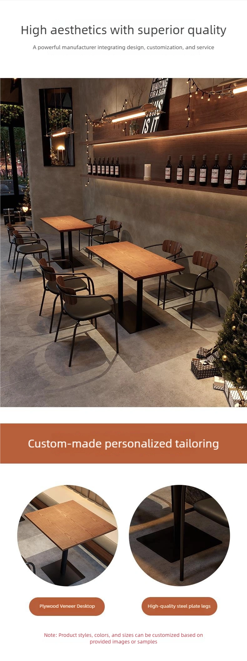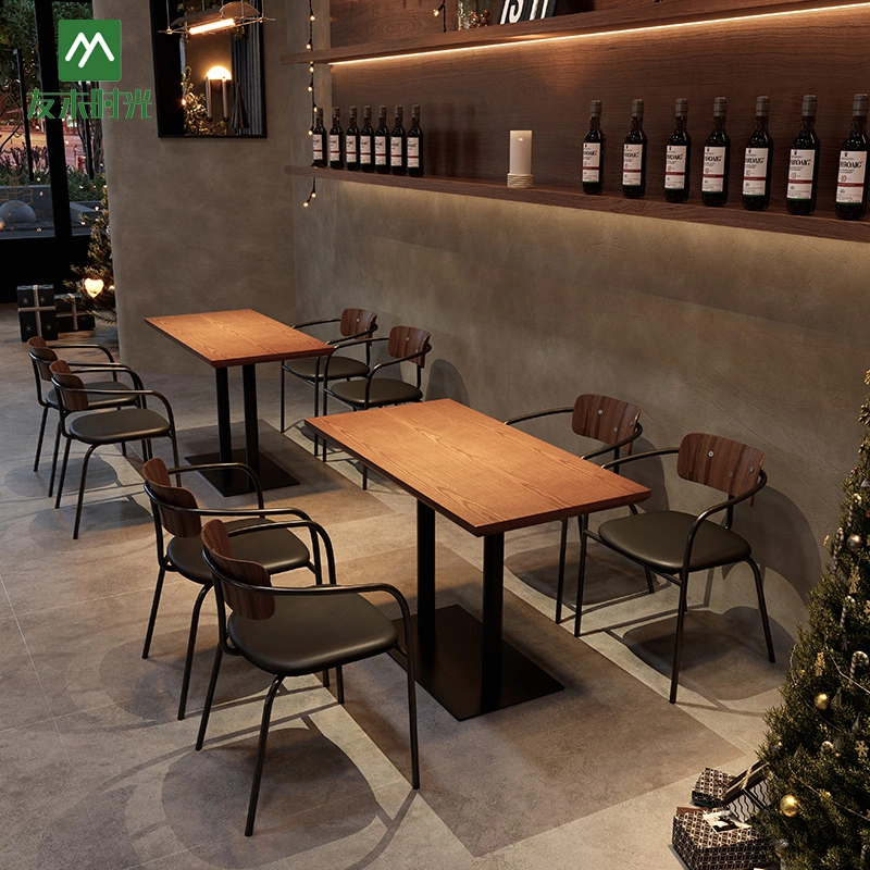 Modern Industrial Aesthetics: This wholesale restaurant furniture combines warm wood tabletops, black metal frames, and dark chairs, making it suitable for cafes, music restaurants, bars, and pubs.