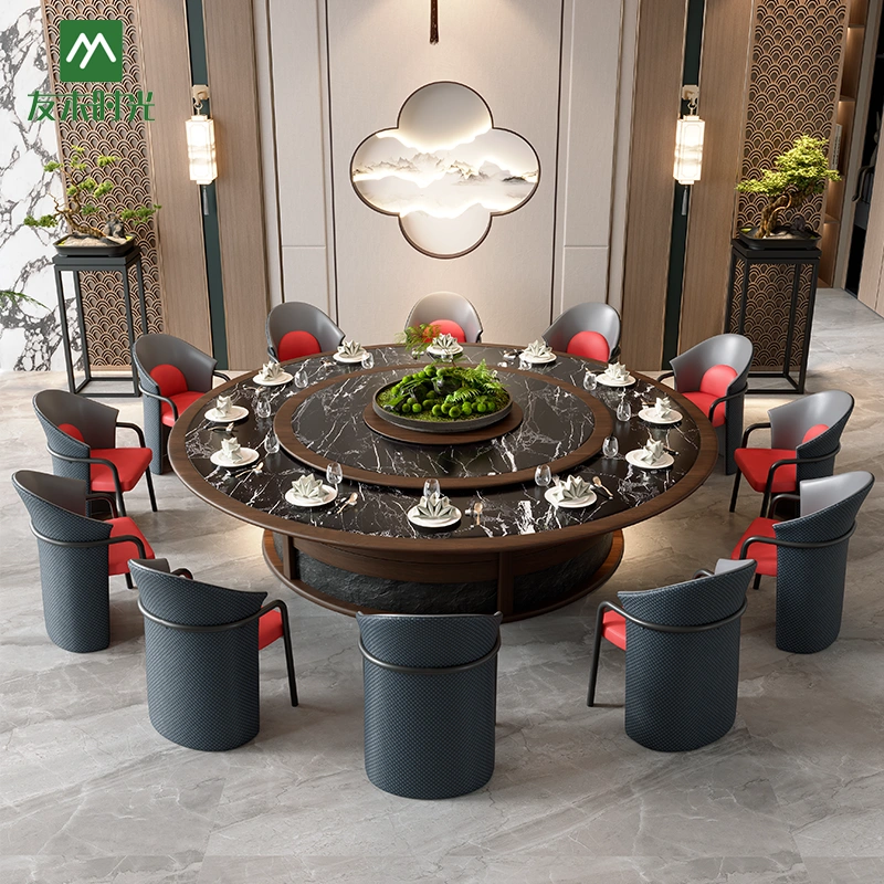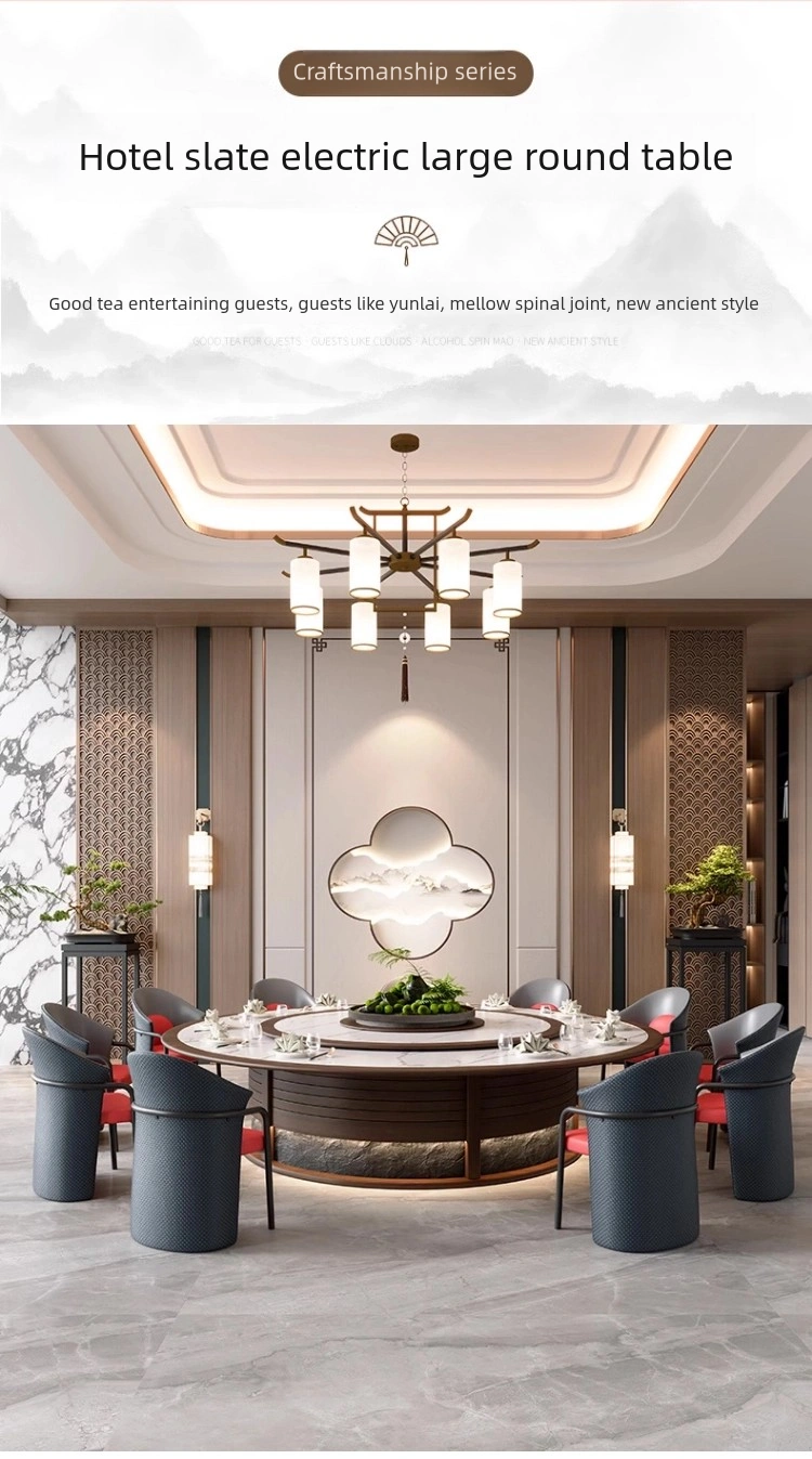 电动旋转桌面: 酒店圆桌的旋转平稳可靠,可为大型团体提供优质实用的用餐体验。.