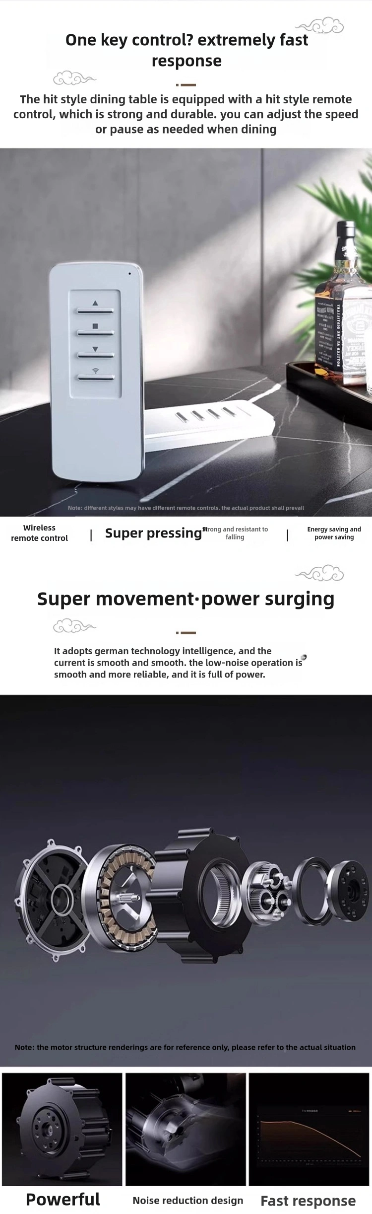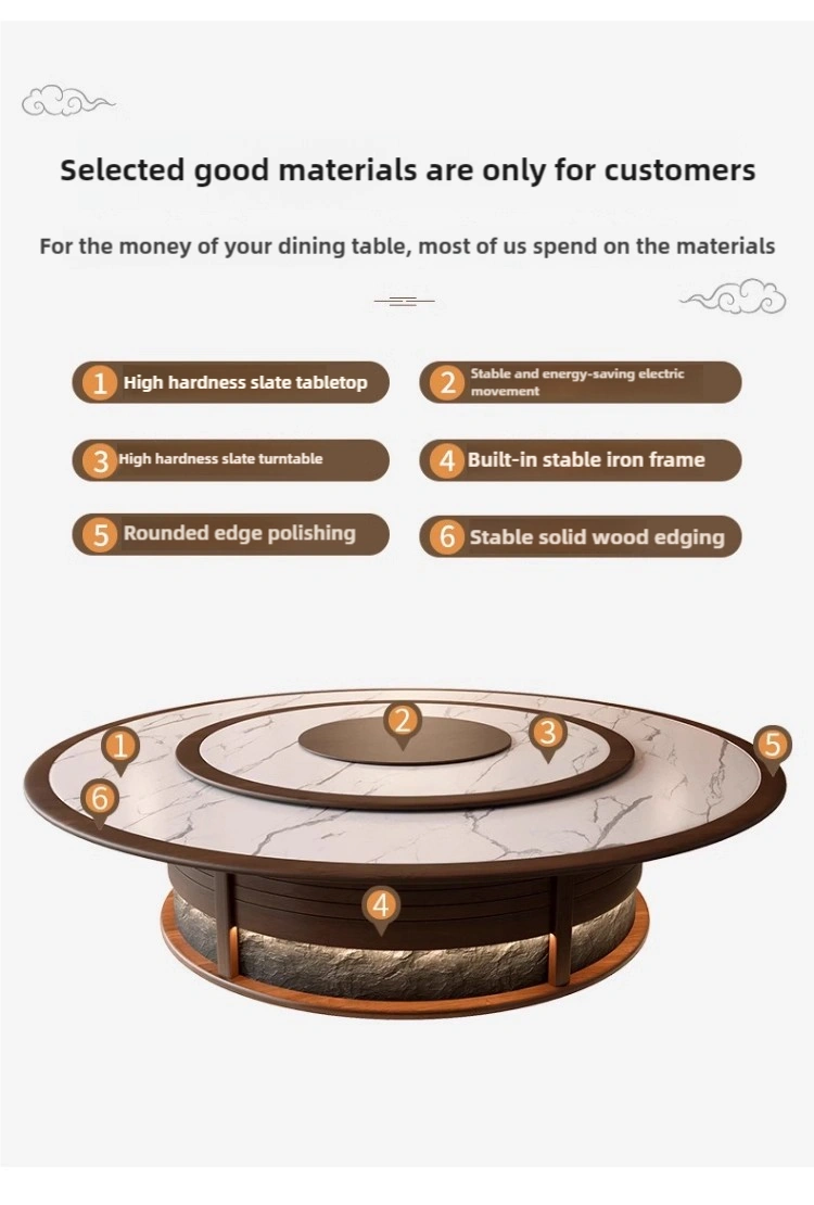 Practical and Convenient for luxurious dining: 平滑旋转的桌面、安静的电机和符合人体工程学的座椅确保了最大限度的用餐舒适度和效率。.