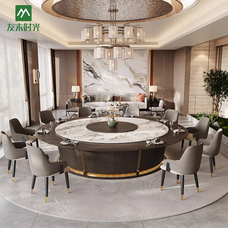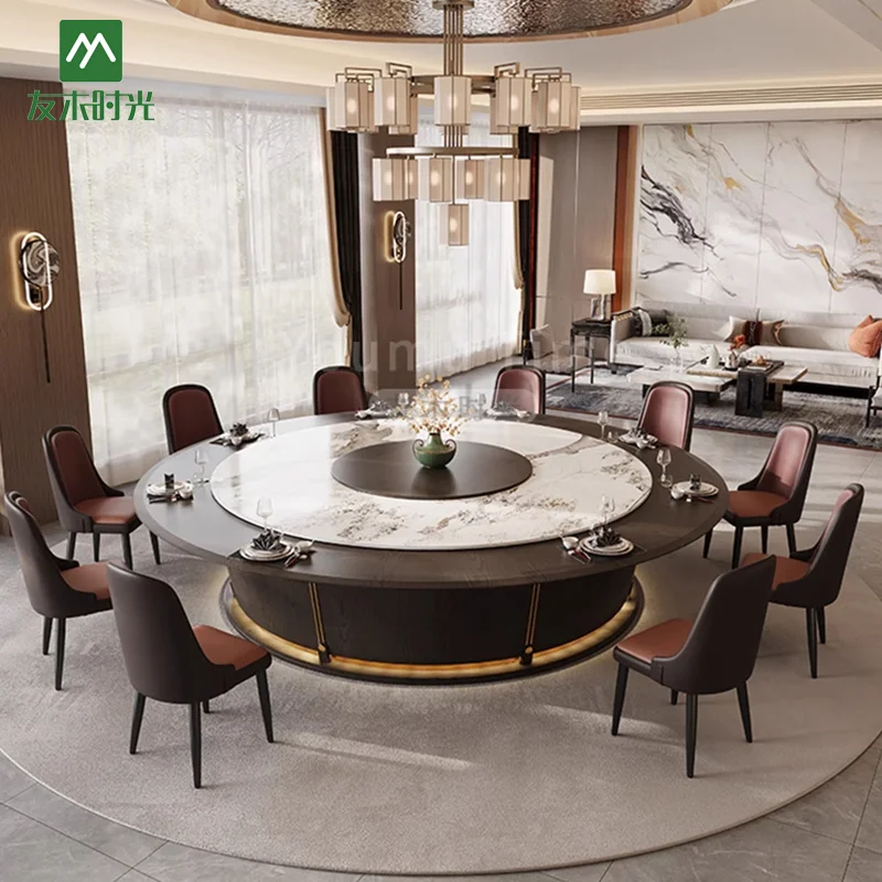Motorized Rotating Tabletop: The hotel round tables feature smooth and reliable rotation, providing a high-quality and practical dining experience for large groups.