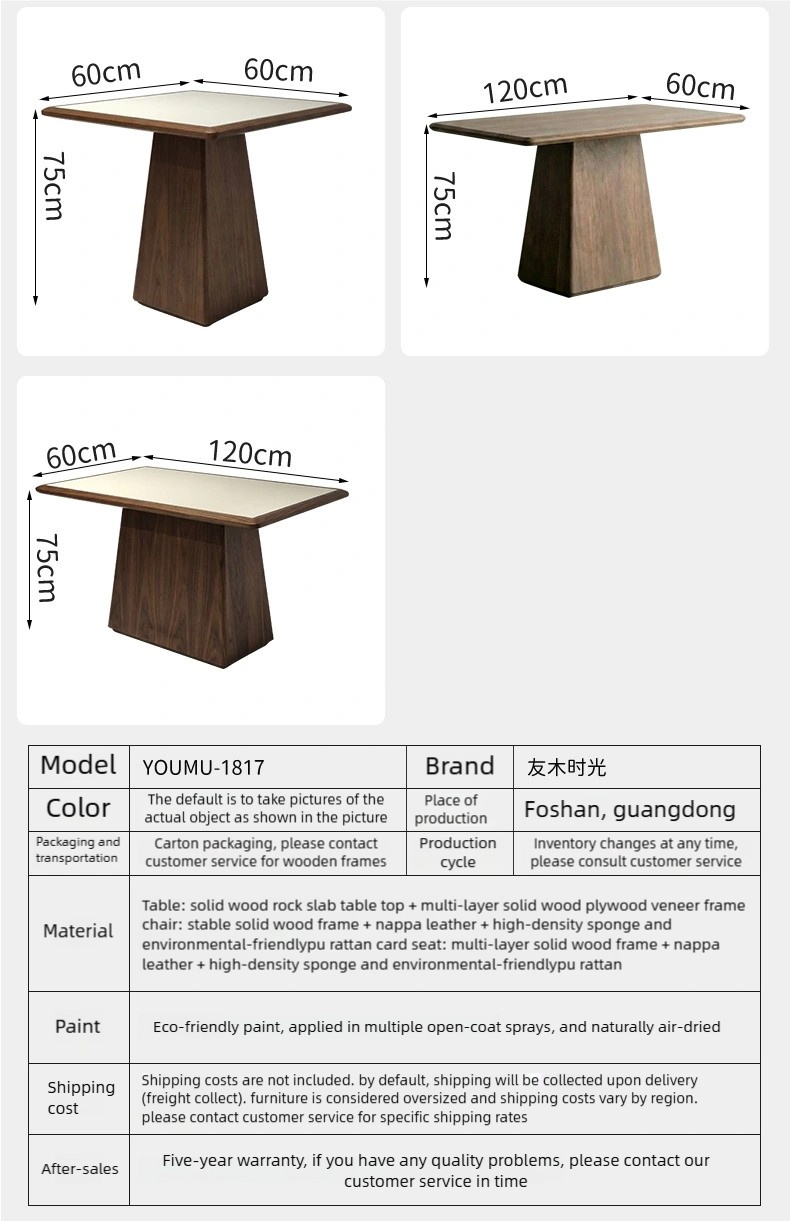 | 表格 | Solid Wood and Marble Tabletop + Wooden table legs |