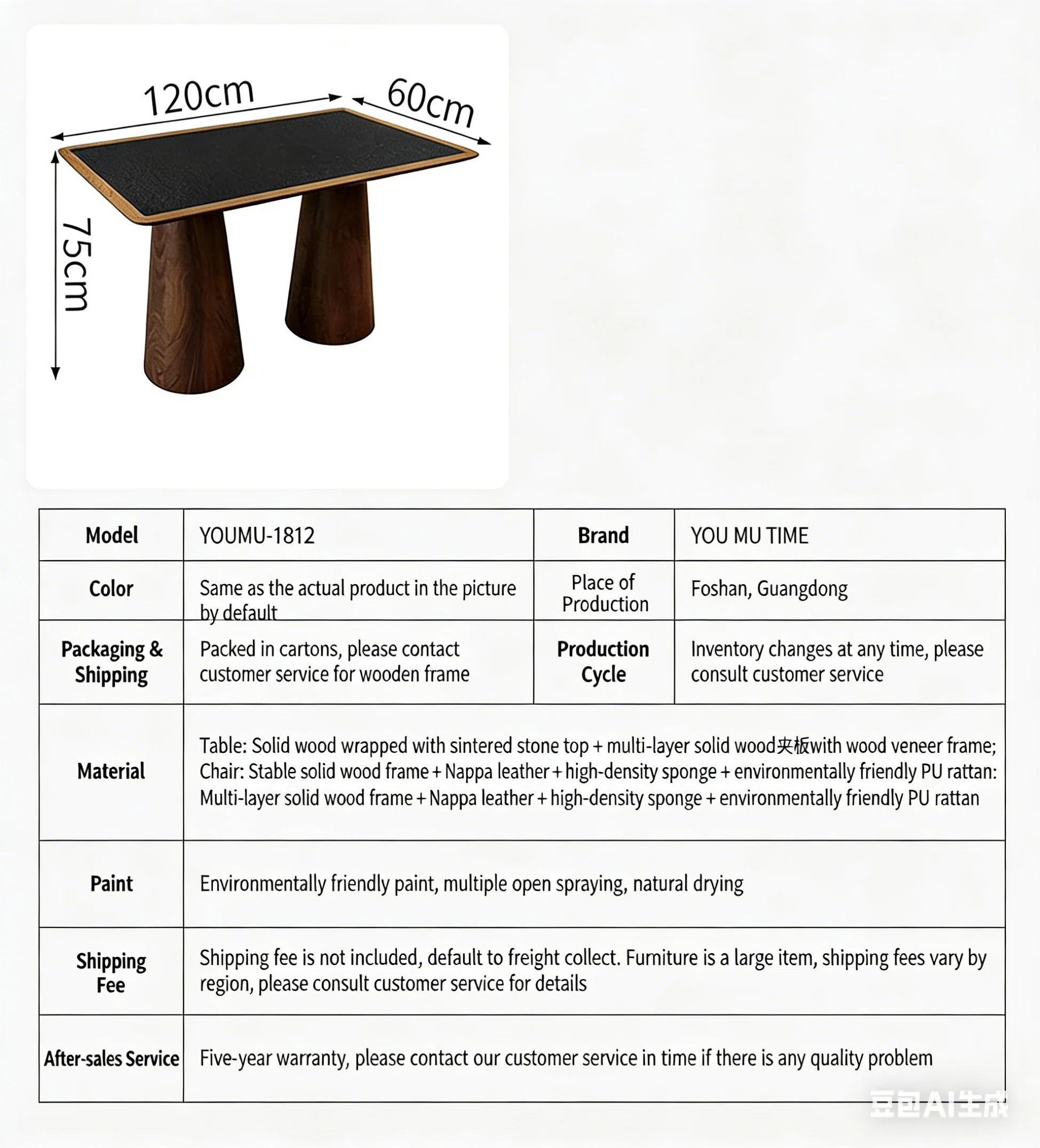 | 表格 | Solid Wood and Marble Tabletop + Wooden table legs |