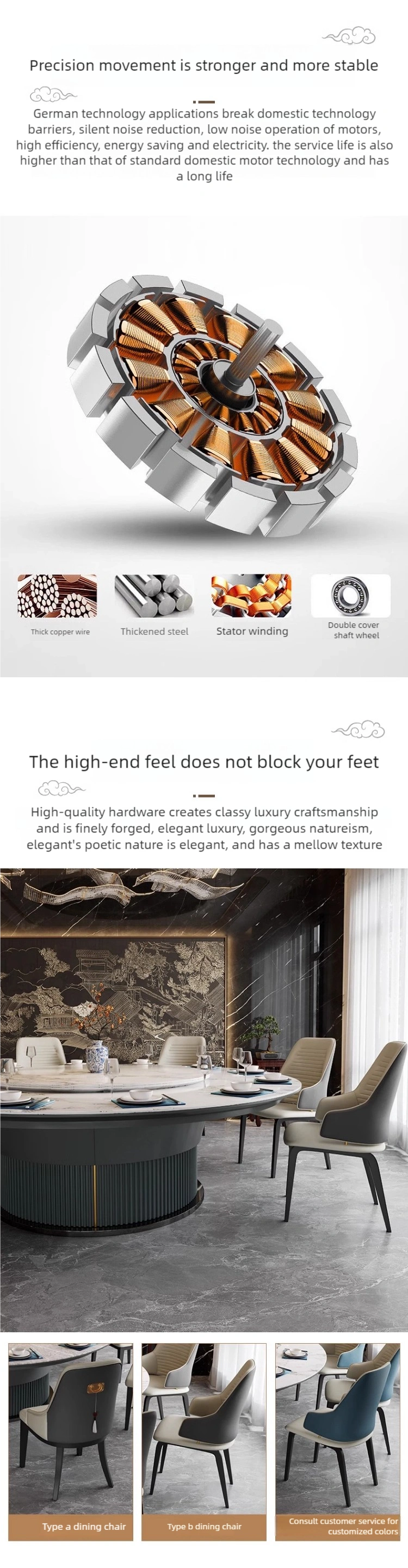 - Electric Rotation: The built-in rotating turntable allows diners to easily share dishes, making multi-person dining more convenient. Guests can access all dishes without manually passing plates.