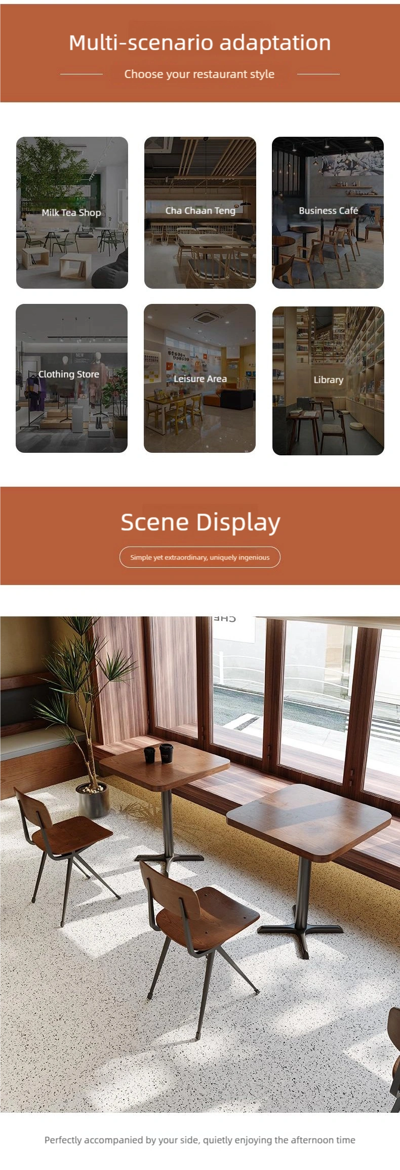 我们提供适用于各种商业空间的家具,包括餐厅家具、咖啡厅家具、酒店家具、户外家具等。.