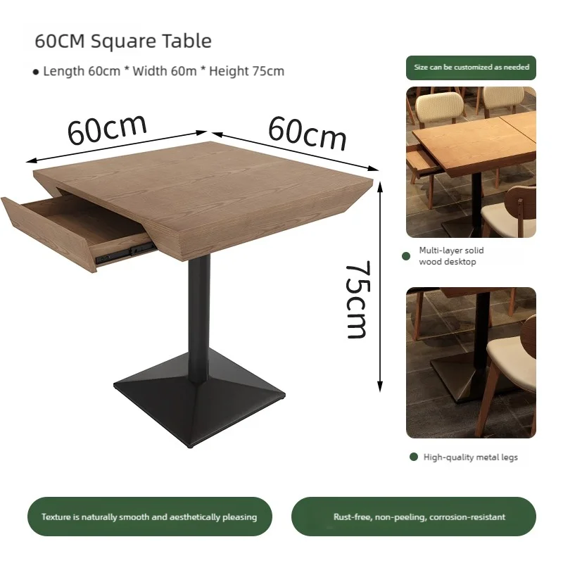 Convenient integrated storage: Built-in drawers under rectangular tables provide customers with a clever, concealed space to store small personal items, or offer staff a place to store menus or cutlery, helping to keep tables tidy.