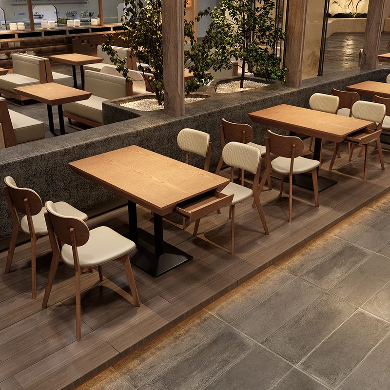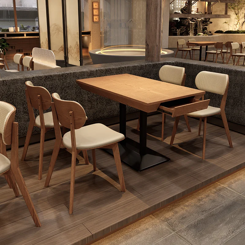 Wholesale Solid Wood Restaurant Table and Chair Sets with Integrated Storage Drawers